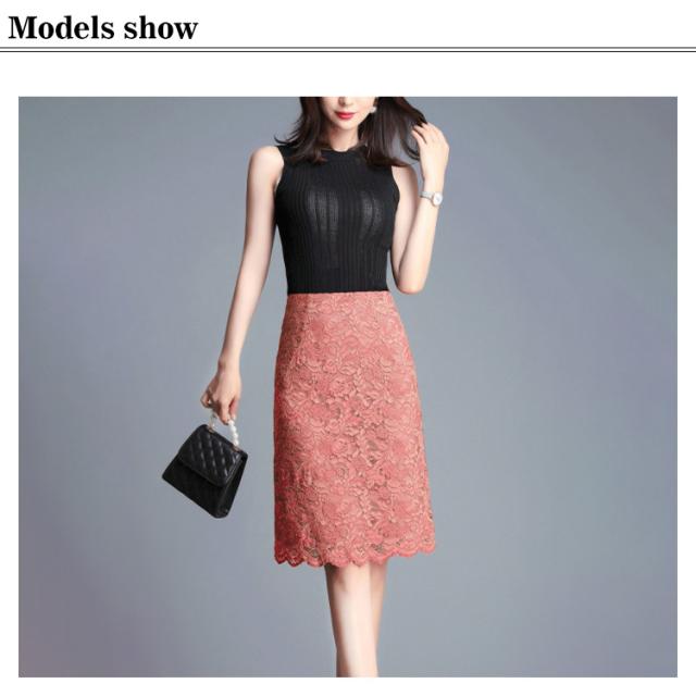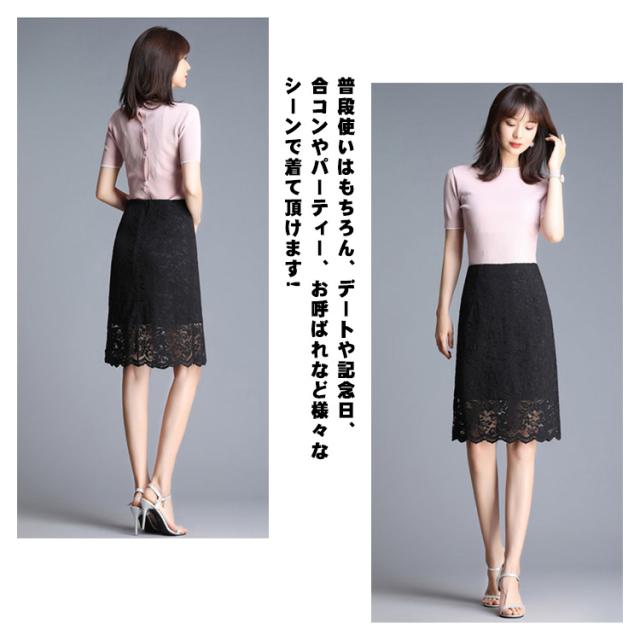 レーススカート タイト スカラップレース タイトスカート 大人 オフィス フェミニン エレガント ゴム ウエストゴム 大きいサイズ M L XL 2XL 3XL 4XL 5XL ライトピンク ブラック ダークピンク