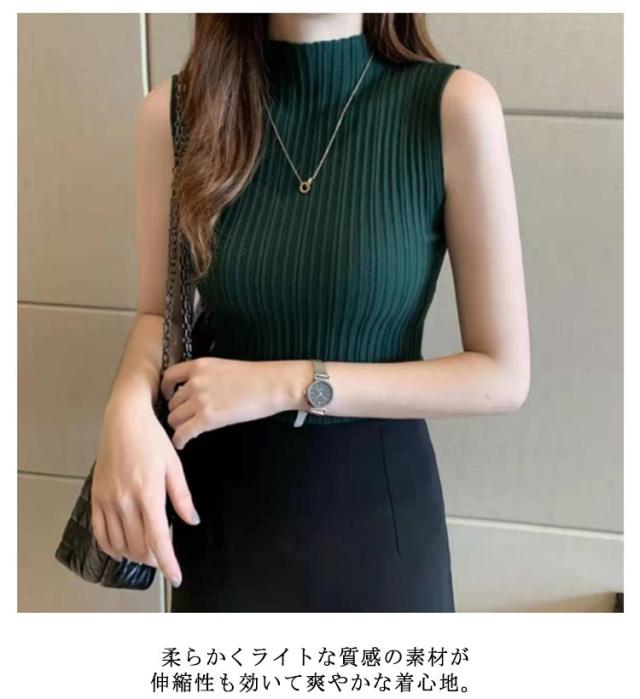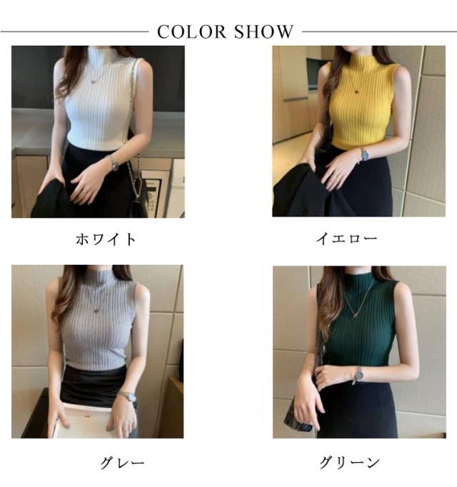 全9色!ノースリーブニット プチハイネック ニットトップス ノースリーブ サマーニット ハイネックニット 春夏 無地 ニット インナー コンパクト お洒落 可愛い 送料無料