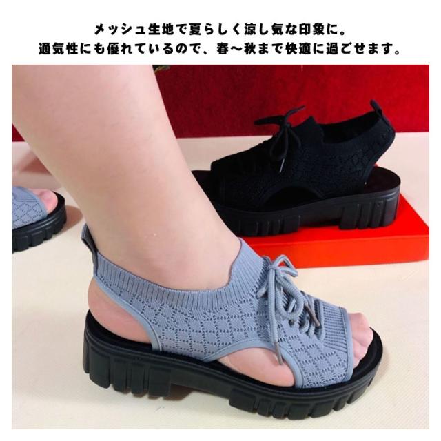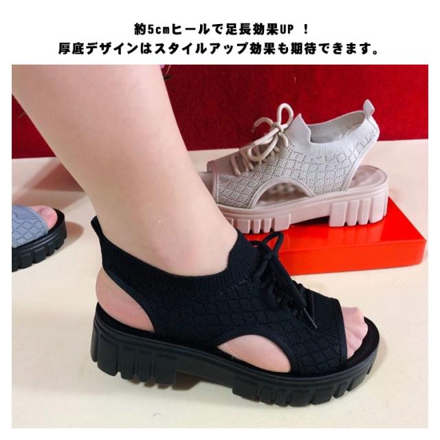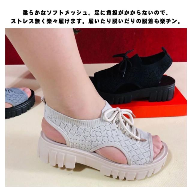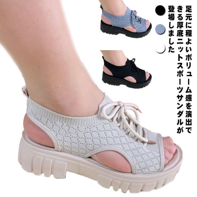 サンダル レディース 軽量 ニットサンダル 厚底 コンフォート 快適 サンダル ストラップ 大人 サンダル 疲れない 歩きやすい 痛くない 安定感 抜群 衝撃吸収 ニット ストレッチ 送料無料