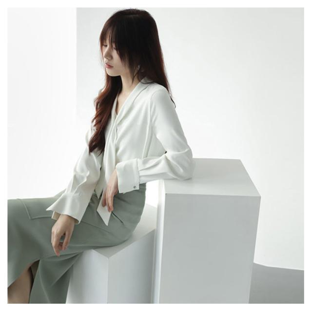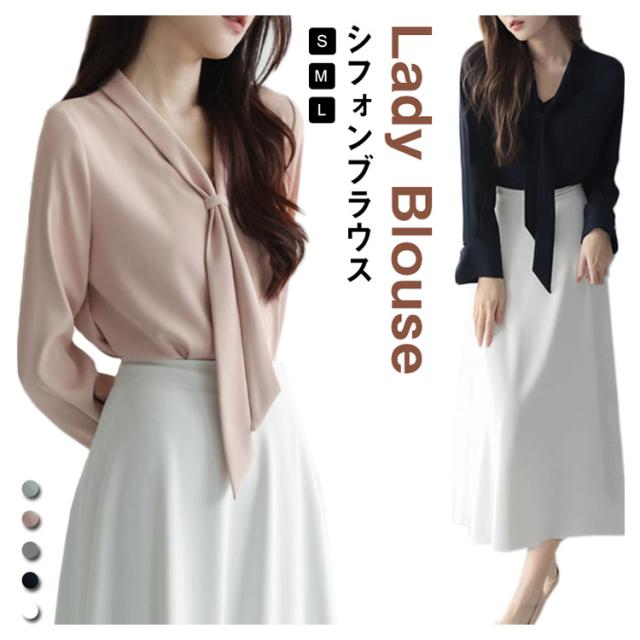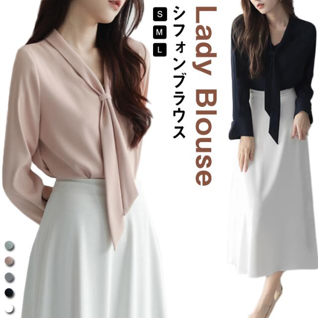 シフォン ブラウス ボウタイ ブラウス 長袖 ブラウス シャツ 通勤 フォーマル レディース シルク風 ブラウス Vネック 長袖ブラウス 長袖シャツ サテン ブラウス リボン ブラウス 長袖 ボウタイ付き フリル ブラウス トップス フェミニン 送料無料