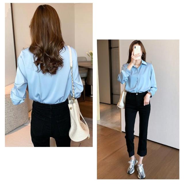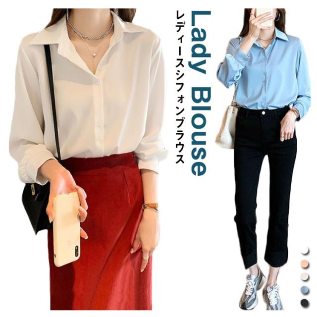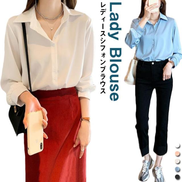 Vネック シフォン ブラウス 長袖ブラウス シフォン 長袖シャツ シルク風 レディース 長袖 ブラウス シャツ シルク風 ブラウス サテン風 ブラウス 通勤 フォーマル フリル ブラウス トップス フェミニン 送料無料