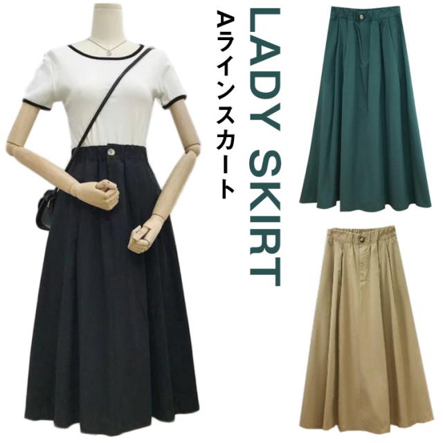 Aライン スカート ロングスカート レディース Aライン スカート ミモレ丈 フレアスカート ロング丈 ロング スカート ハイウェスト スカート 体型カバー ナチュラル 送料無料
