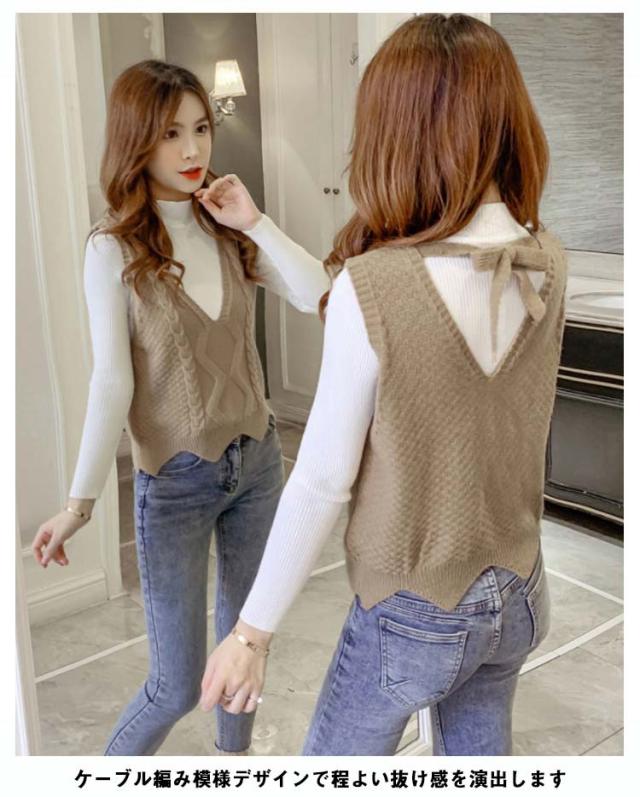 ニットベスト ニットタンクトップ ベスト レディース ニット タンクトップ トップス 重ね着 ベスト ケーブル編み ノースリーブ タンク レイヤードレイヤード風 ニットタンクトップ シンプル