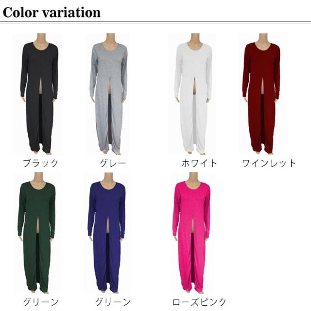 tシャツロングワンピース スリット ワンピース ロング丈 長袖 tシャツ ロングワンピース tシャツワンピ ロングワンピース 体型カバー ナチュラル 無地 シンプル おしゃれ