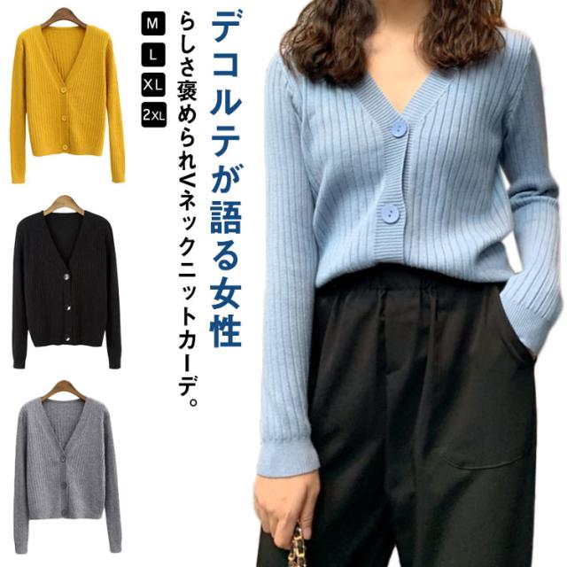 ニットカーディガン Vネック リブカーディガン リブ編み Vネックカーディガン 長袖 無地 カーディガン シンプル 通勤 オフィス 寒さ対策 お洒落 女性 春 秋 夏 女性 レディース 送料無料
