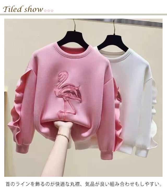 110−160cm!女の子 パーカー 子供服 刺繍パーカー フリル袖 ラウンドネック トップス トレーナー 刺繍 可愛い 送料無料