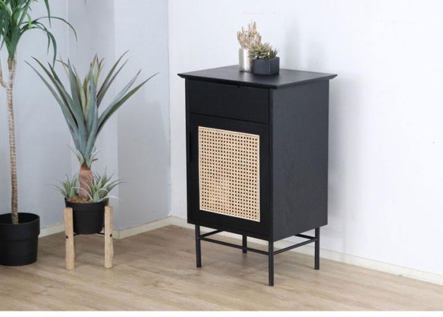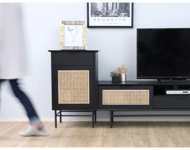 耐久性のある人工ラタンと美しい木目が上質さ溢れるチェスト。