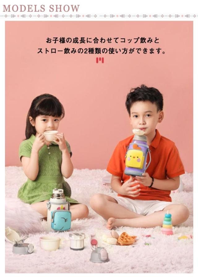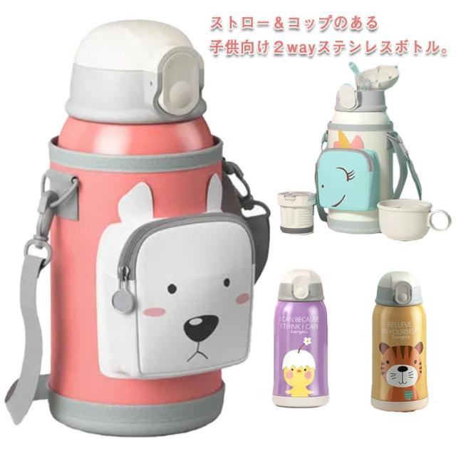| ストロー&コップのある子供向け2wayステンレスボトル。 ステンレス真空断熱構造でしっかり外気温を遮断、保温と保冷効果に優れています。 お子様の成長に合わせてコップ飲みとストロー飲みの2種類の使い方ができます。 お出掛けに便利な長さが調節できるショルダーベルトとカバーが付いています。 毎日の通学に、遠足に、運動会に。 | |