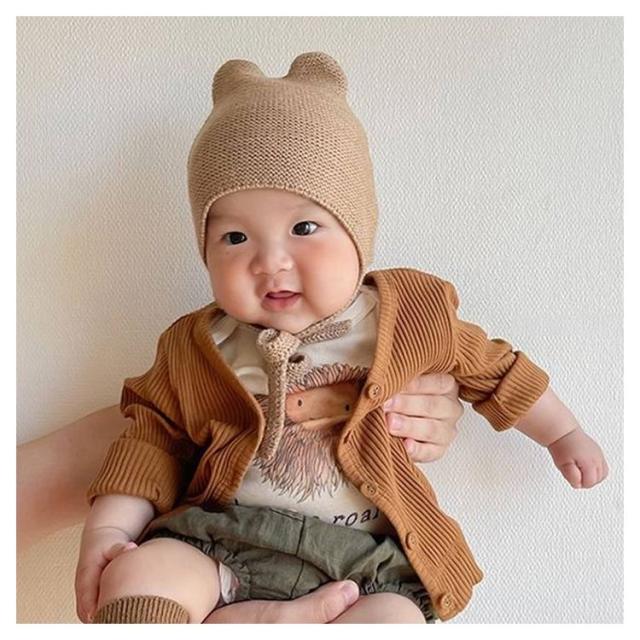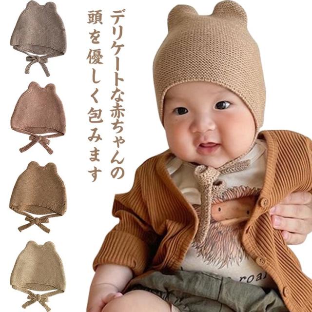 ベビー とんがり帽子 ボンネット キャップ 出産祝い ギフト プレゼント 春 秋 冬 男の子 女の子 耳付き 帽子 ニット 0-6ヶ月 退院着 頭を守る セレモニー ニューボーンフォト 写真撮影 記念写真 新生児 乳児 赤ちゃん 送料無料