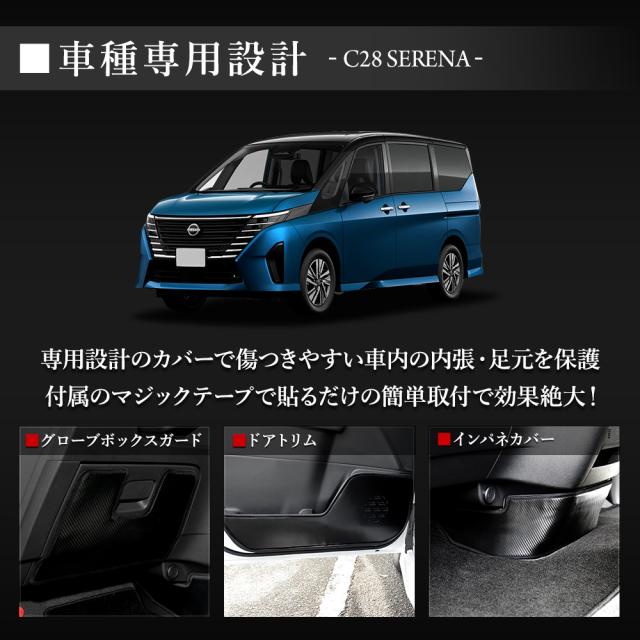 C28 セレナ 専用 キックガード3点セット 選べる2タイプ[カーボン調/レザー調]