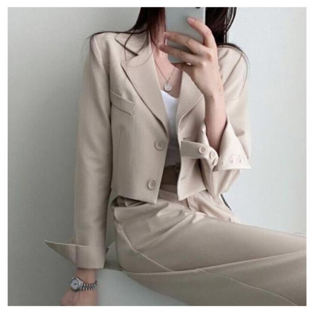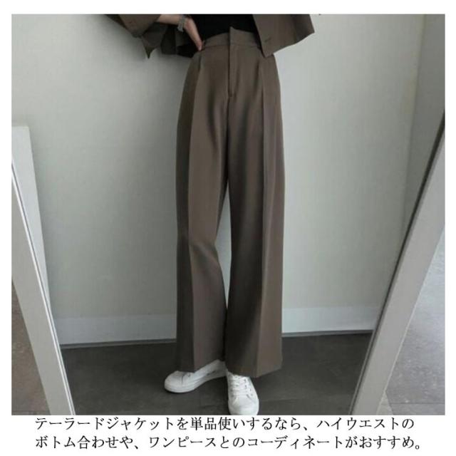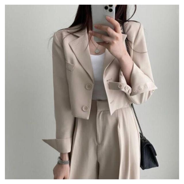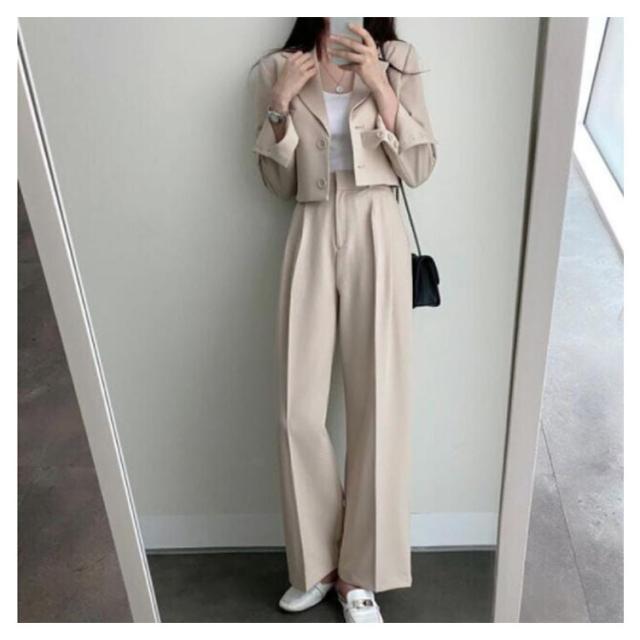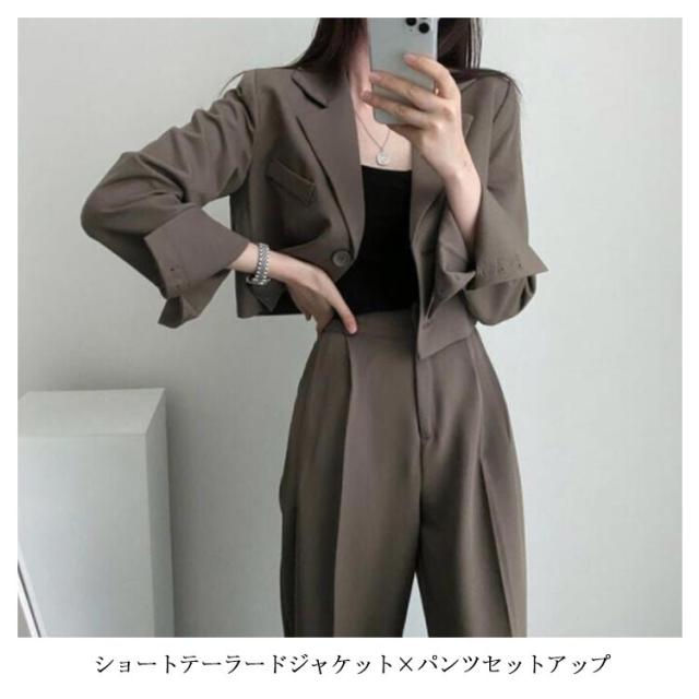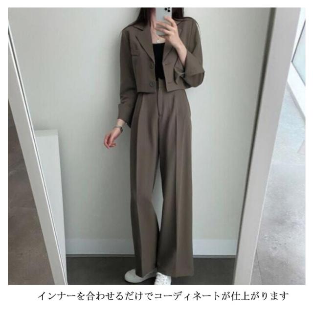 韓国ファッション セットアップ 2点セット ショートジャケット 長袖 テーラード テーラードジャケット ストレートパンツ ワイドパンツ スラックス ストレート ダットパンツ カジュアル 秋 春