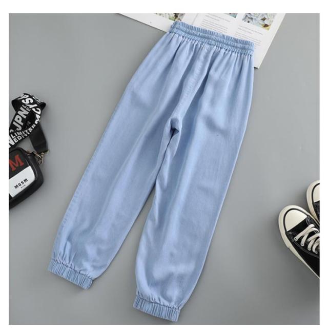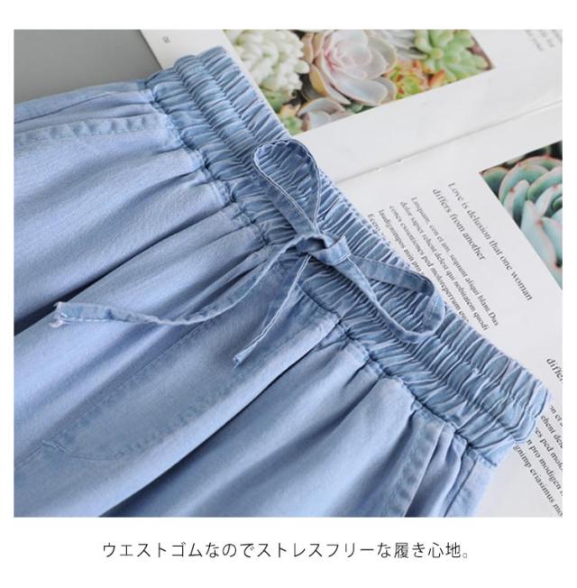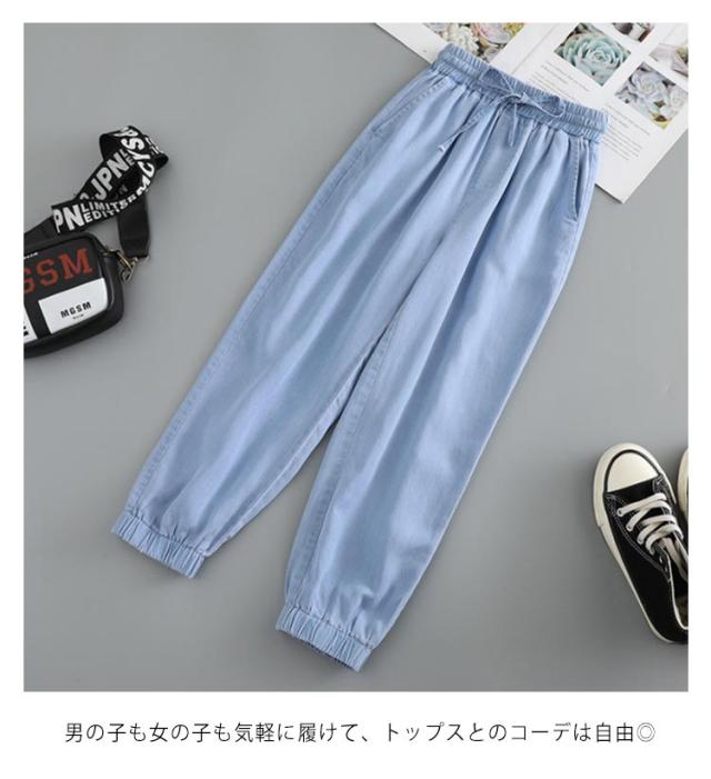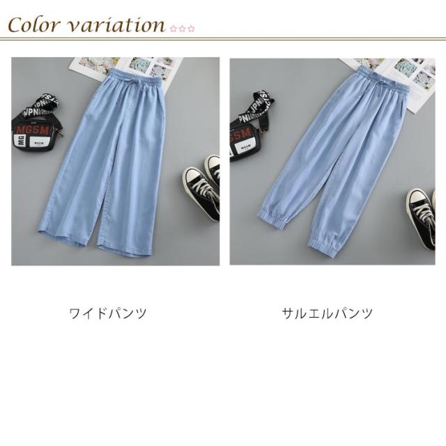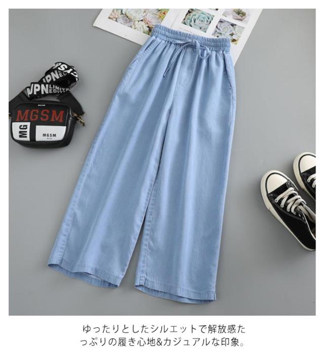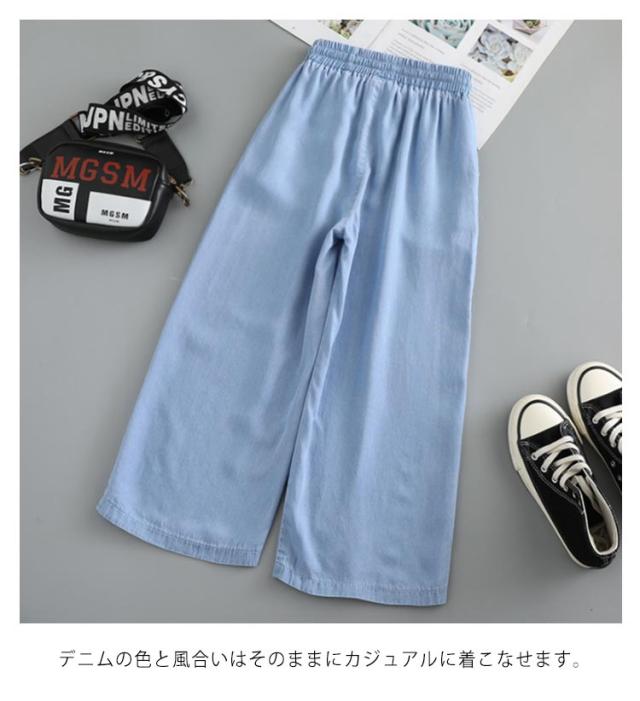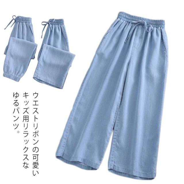 ワイドパンツ キッズ サルエルパンツ 女の子 ロング丈 薄手 デニムパンツ Gパン 春夏 ウエストゴム リボン サマーパンツ 蚊対策 ジュニア ボトムス 長ズボン ゆったり カジュアル おしゃれ 柔らかい 無地 通学 遊園地 送料無料
