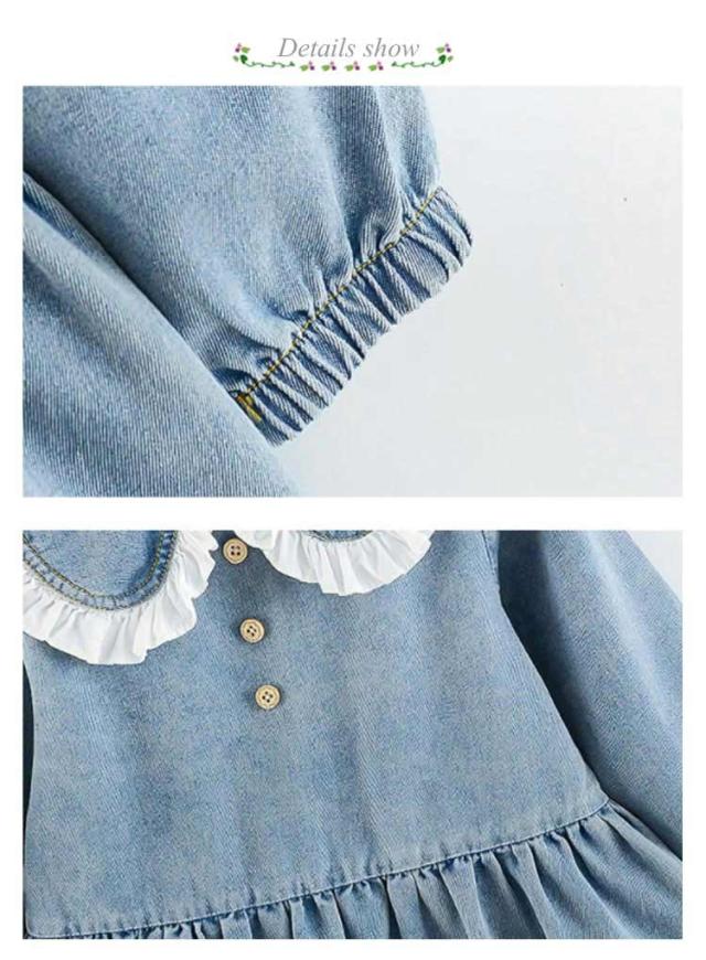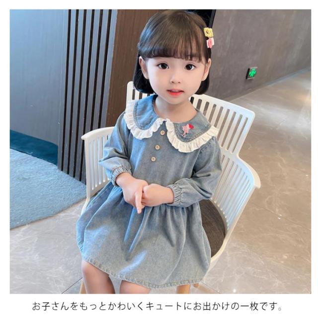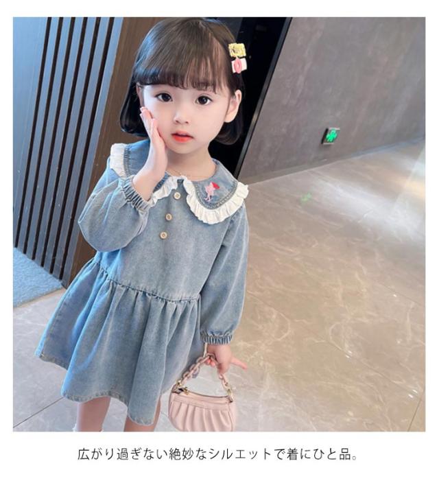 子供服 ワンピース キッズ 女の子 デニムワンピース シャツワンピース 長袖 膝丈 春服 秋服 デニム 子ども服 ベビー服 女児 ガールズ フレア Aライン おしゃれ かわいい 襟付きワンピース 前ボタン セーラー服 カジュアル キュート 日常 定番 送料無料