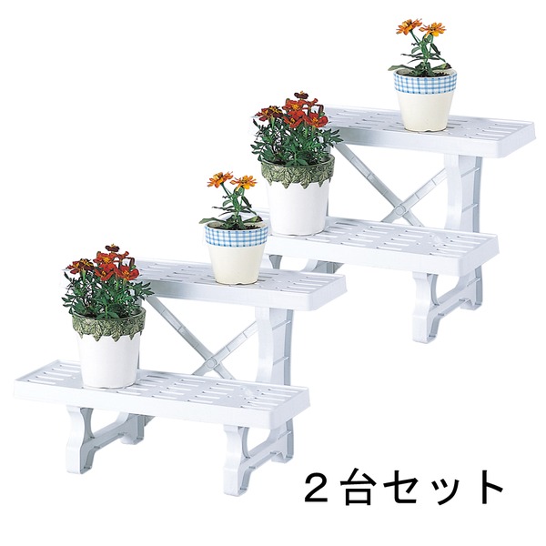 〔2台セット〕 フラワースタンド 約幅45cm ヒナ 2段 450 ホワイト 日本製 国産 園芸用品 ガーデニング用品 プランタースタンド 白