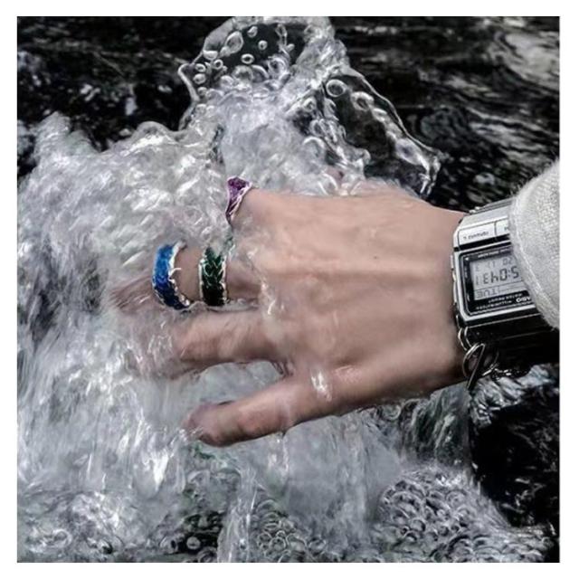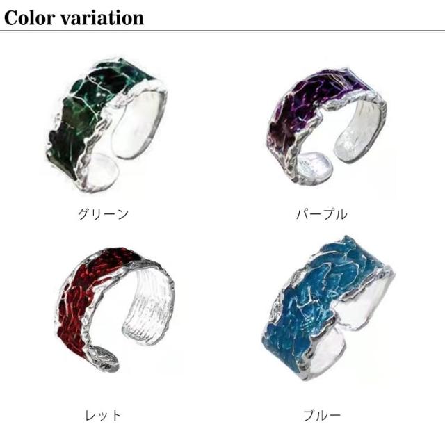 リング レディース シルバー925製 ウェーブ 海の波 幅広 幅広リング 指輪メンズ レディース シルバー SV925 エナメル グリーン レット パープル ブルー