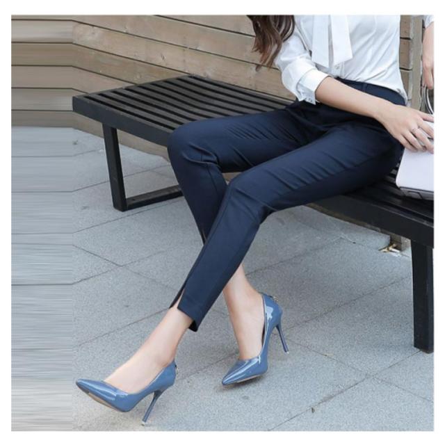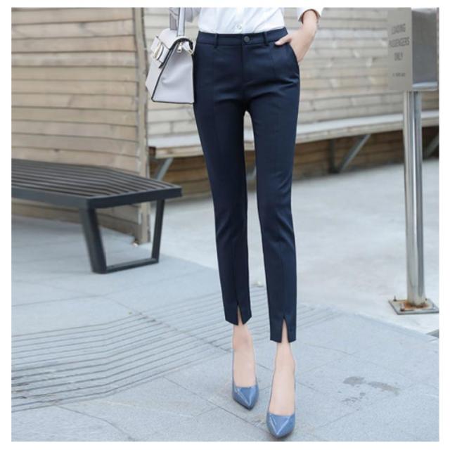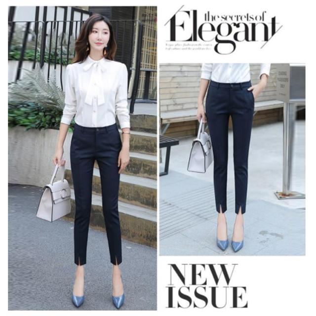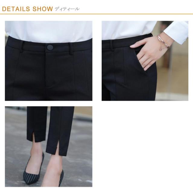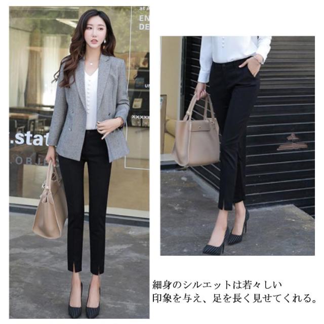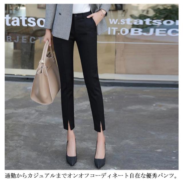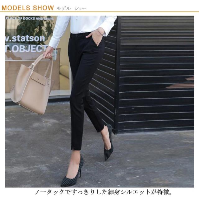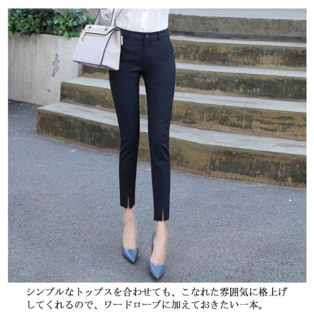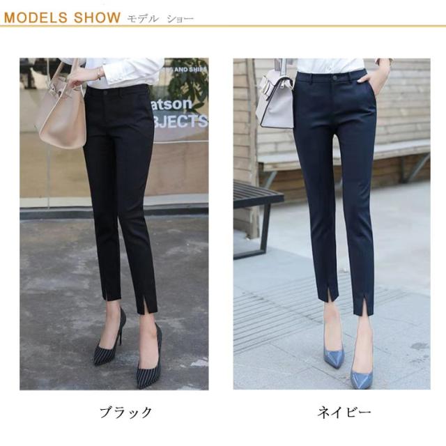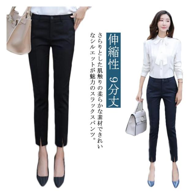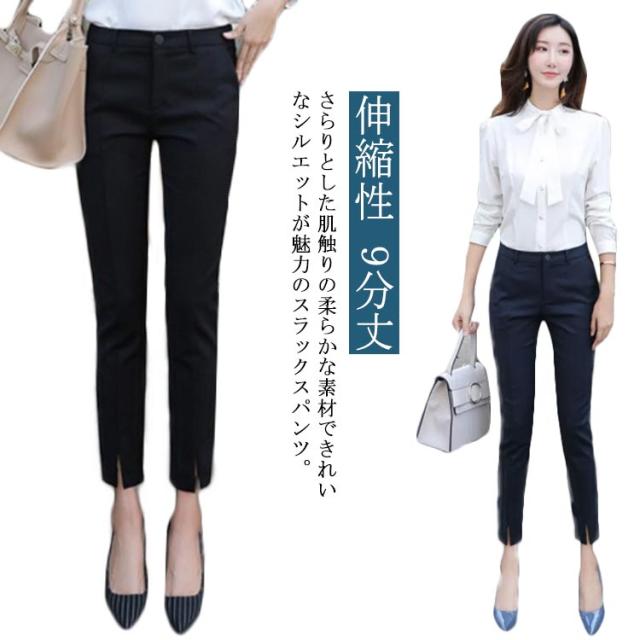 【送料無料】スラックス テーパード 9分丈 レディース 薄手 スリム ストレンチ 通勤 OL オフィス フォーマル パンツ 春夏秋 ボトムス 秋物 スリット ポケット付き ノータック 伸縮性 大人 おしゃれ 黒 紺 ネイビー