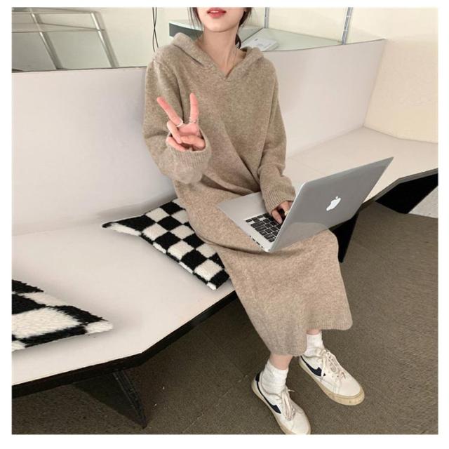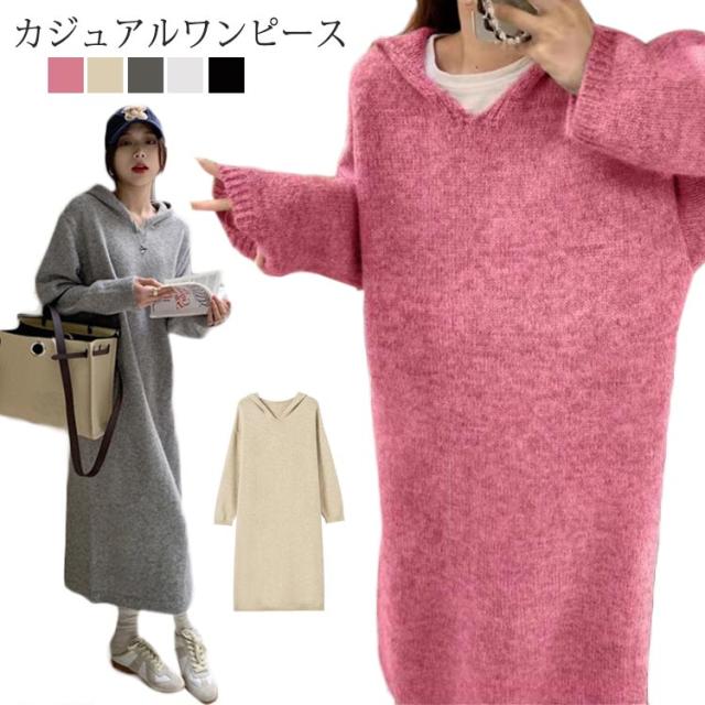 送料無料 ニットワンピース レディース ロングワンピース マキシ丈 フード付き ニット ワンピ 長袖 秋冬 暖かい ワンピース ゆったり 大きいサイズ セーター 体型カバー ルームウェア おしゃれ きれいめ 大人可愛い カジュアル
