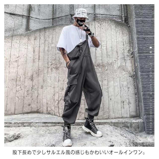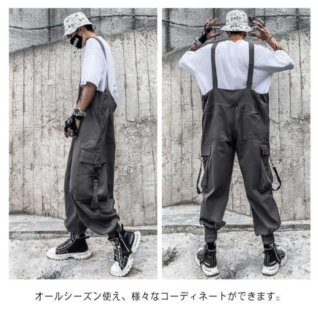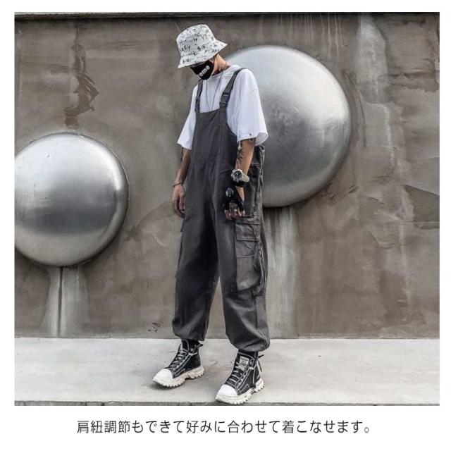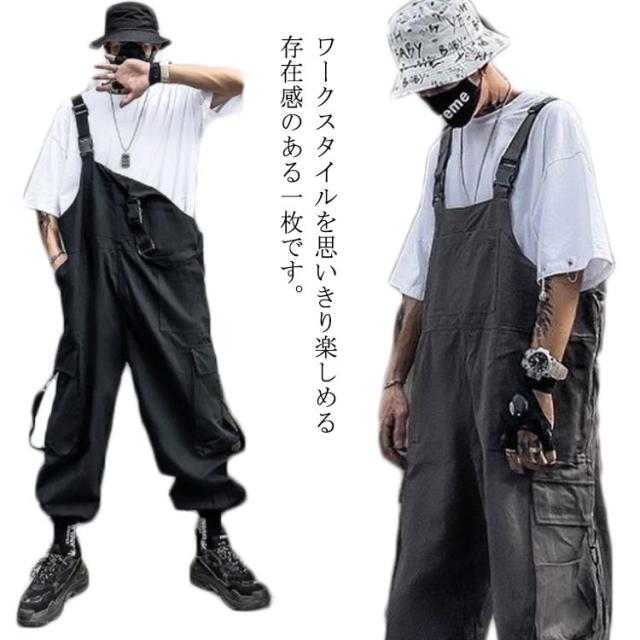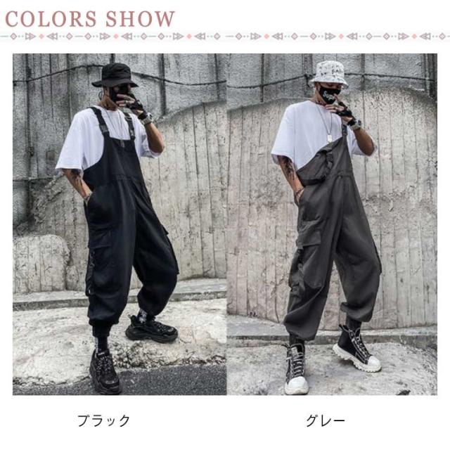オーバーオール メンズ レディース サロペット ユニセックス つなぎ 無地 ブラック グレー オールインワン 作業服 大きいサイズ カジュアル 体型カバー 男女兼用 カーゴパンツ ゆったり おしゃれ ストリート ファッション ボトムス