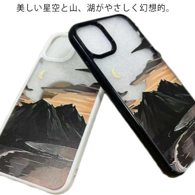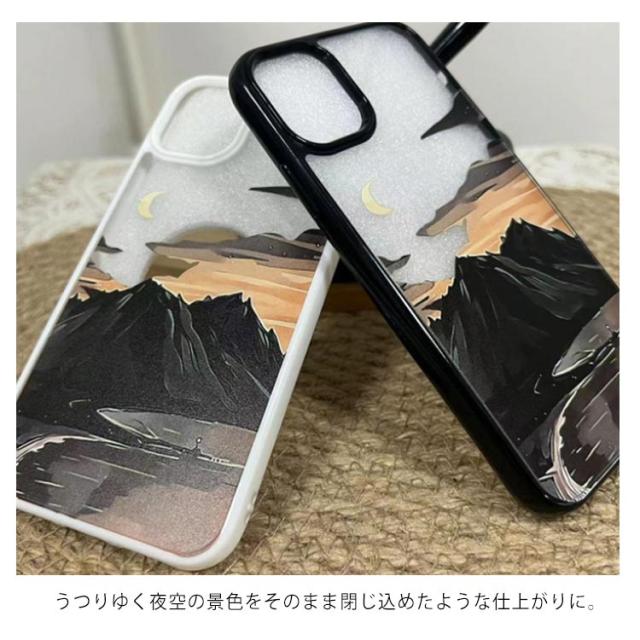 スマホケース 多種対応 iPhone13 ケース pro max iPhone12 11 SE2 曇 月 ムーン 山 湖 送料無料 幻想的 空 星空 月 おしゃれ クリアケース Apple アイフォンケース
