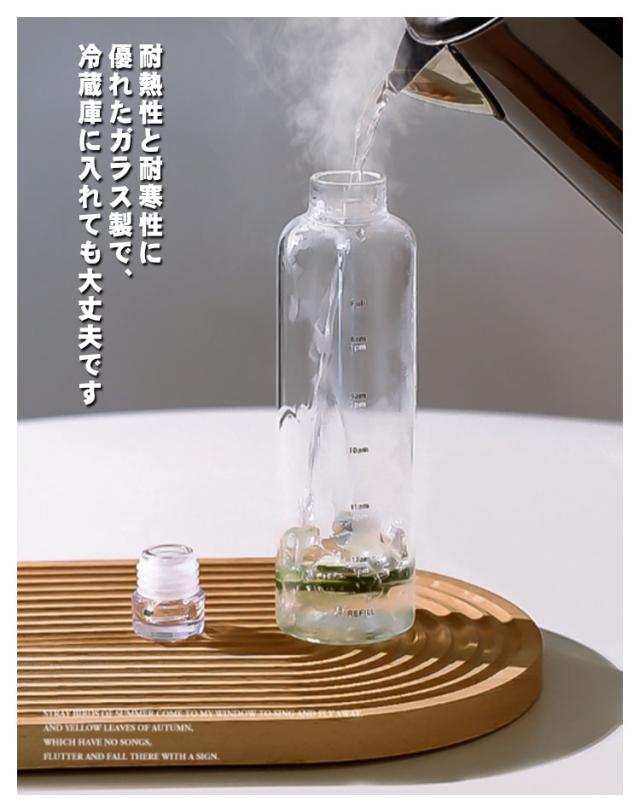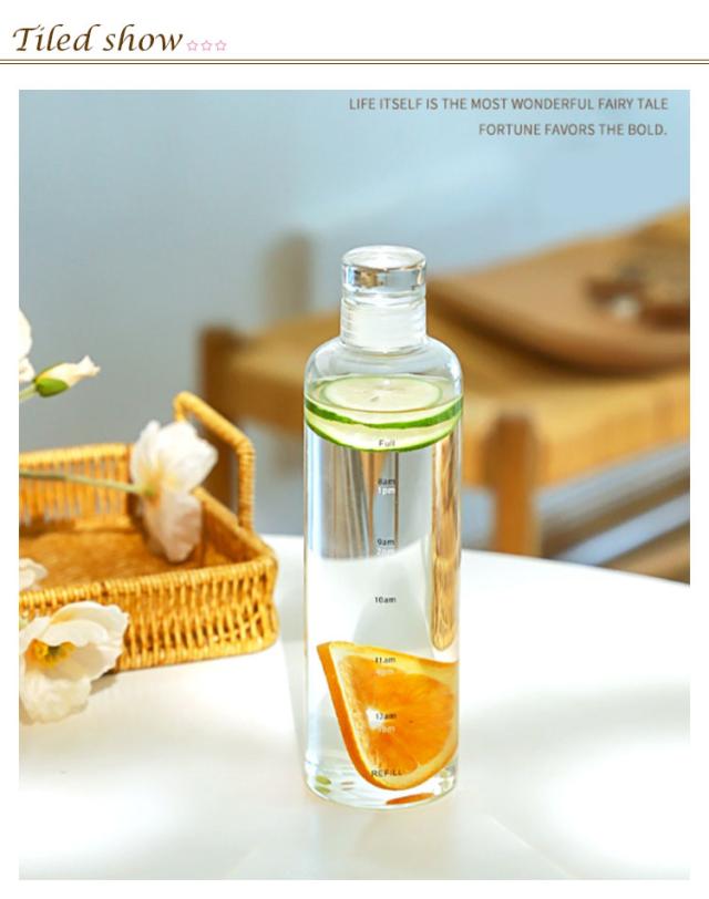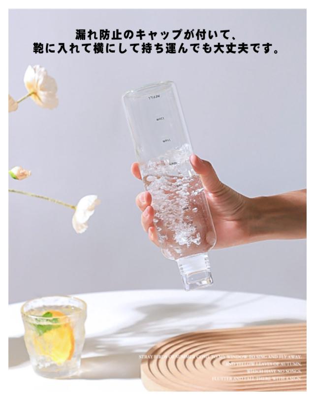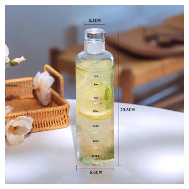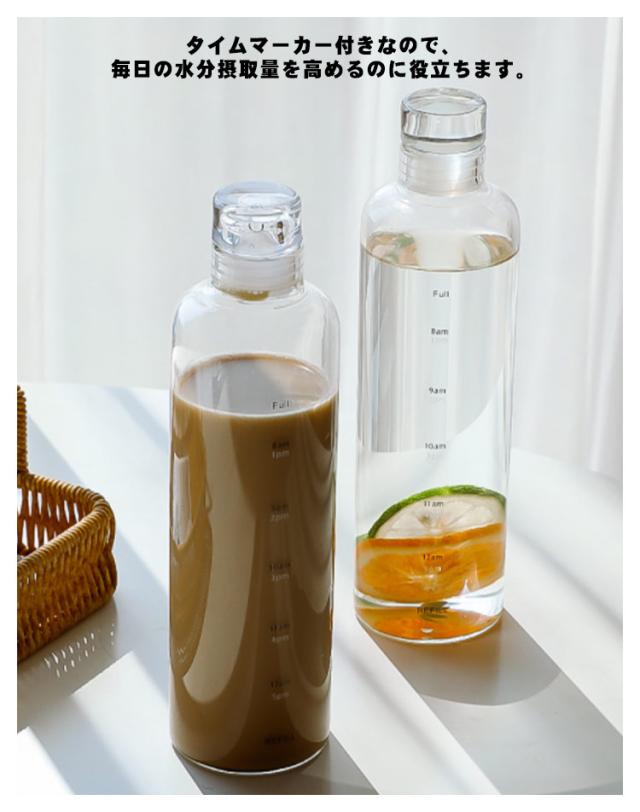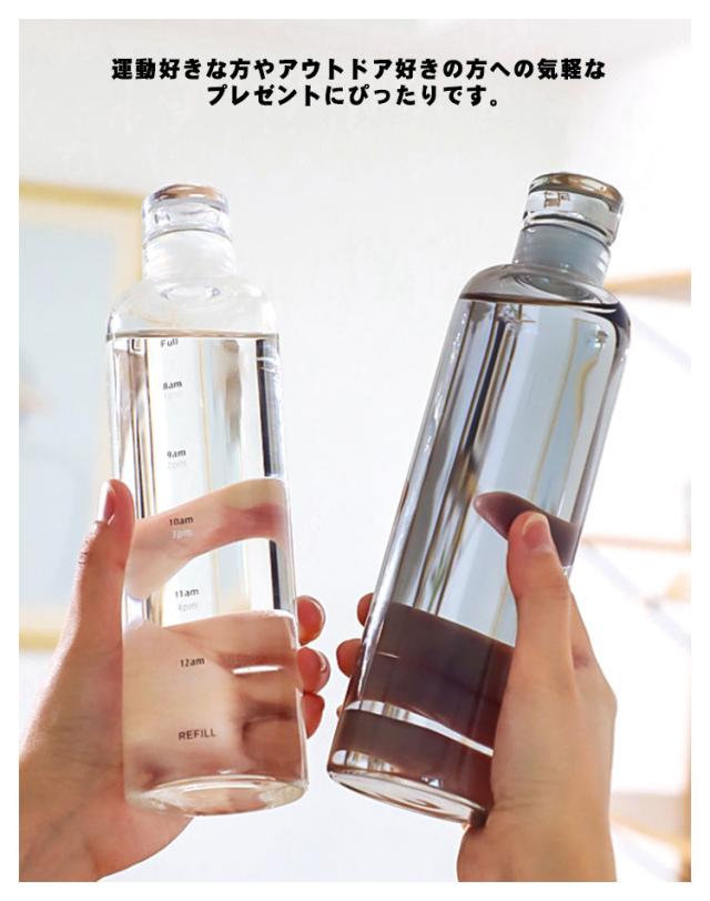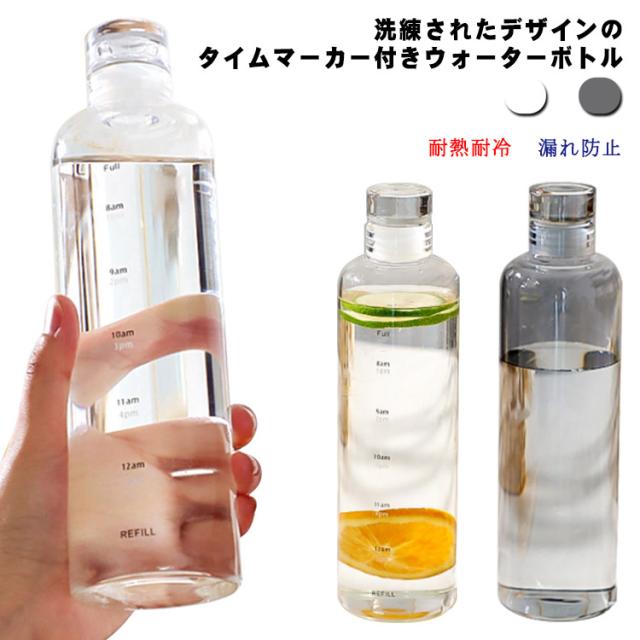 ウォーターボトル タイムマーカー ガラス 水分補給 耐熱耐冷 クリアボトル 水筒 男女兼用 子供 大人 漏れ防止 直飲み ジム アウトドア お洒落 運動用 通勤 通学 旅行 ランニング 洗いやすい 送料無料