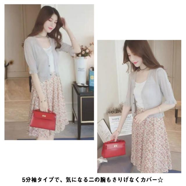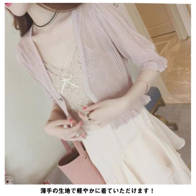カーディガン 薄手 レディース 春夏 UVカット 通勤 ゆったり トップス 透かし編み 紫外線対策 5分袖 ボレロ サマーカーディガン Vネック 無地 シンプル 可愛い きれいめ 冷房対策 涼しい 通気性 送料無料
