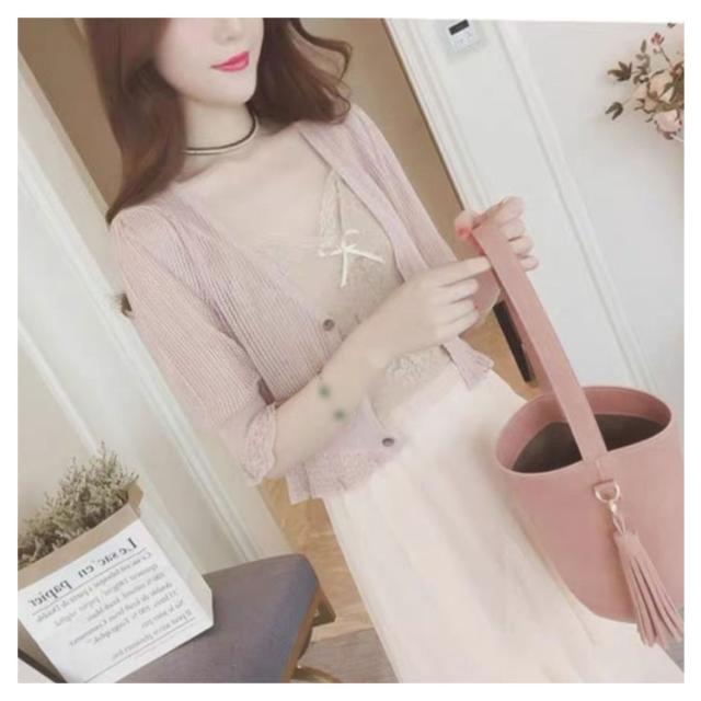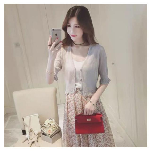 | ショート丈のレディース夏用ニットカーディガンです。 薄手の生地で軽やかに着ていただけます! 締めつけ感もなく、お洒落で可愛いデザインです。 5分袖タイプで、気になる二の腕もさりげなくカバー☆ 夏場は日焼け止め、冷房対策の不可欠な一枚になります。 | |