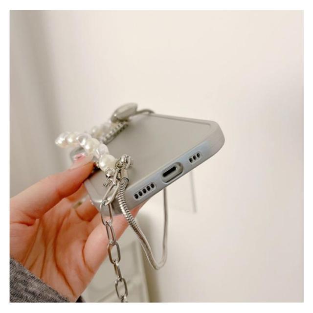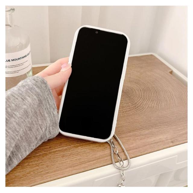 iPhone 13 12 11 pro max ケース iPhonese第二世代 スマホケース iphoneSe ケース おしゃれ 韓国 iphone12 スマホカバー おしゃれ パール チェーン付き シルバー