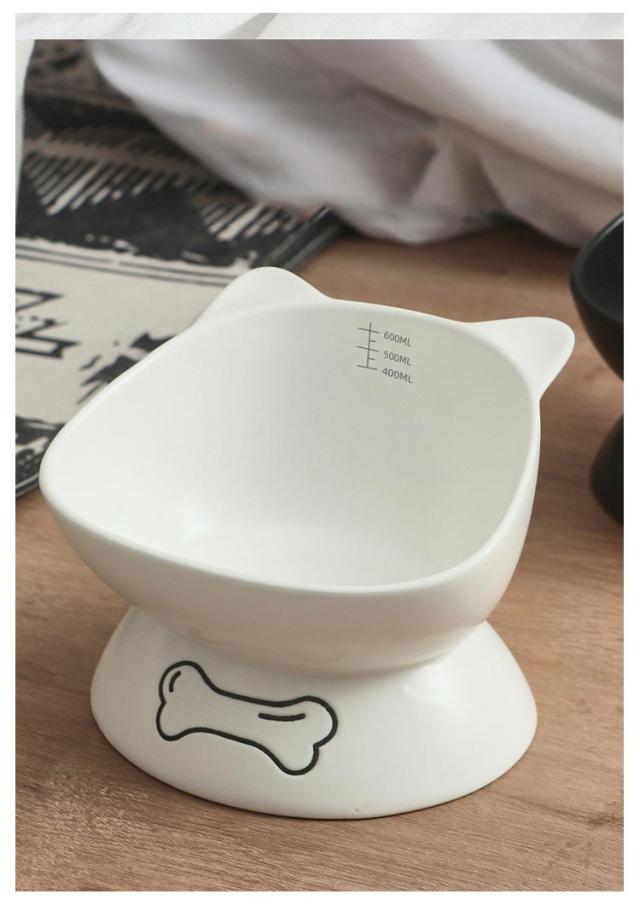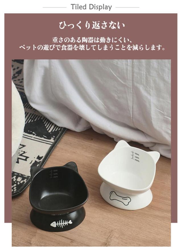 送料無料 フードボウル 猫用 犬用 陶器 斜め 頚椎保護 ペットグッズ ペット食器 ペット用 スタンド 脚付 滑り止め セラミック エサ入れ シンプル 餌皿 水入れ エサ皿 お皿 かわいい おしゃれ 高級感 子猫 子犬 猫耳 黒 白