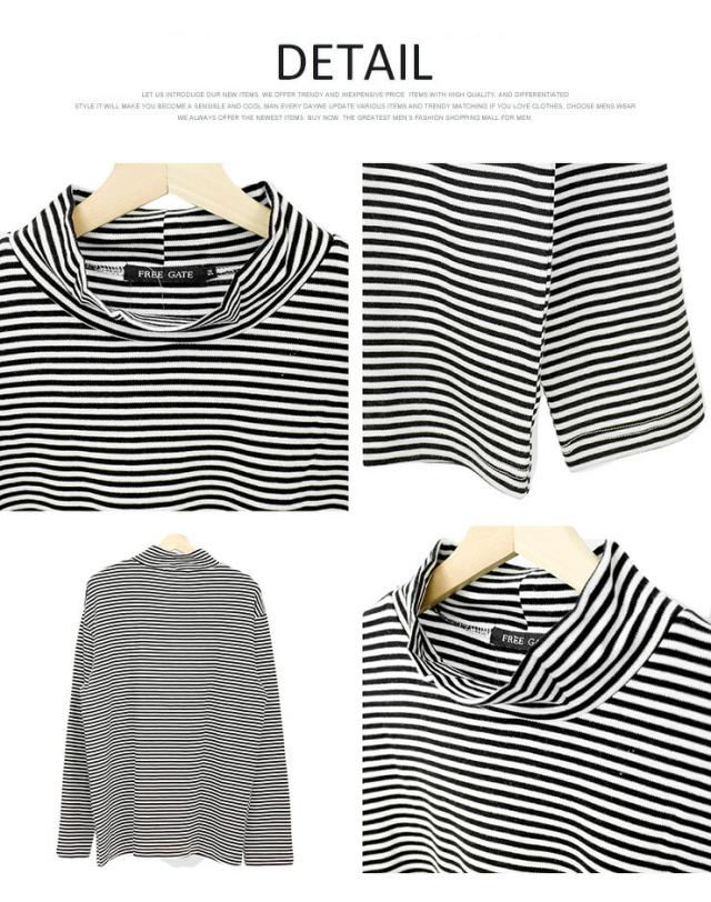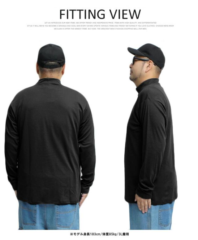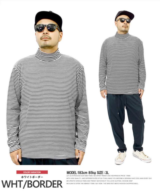 【メール便で送料無料】 長袖Tシャツ メンズ 大きいサイズ 無地 ボーダー フライス ハイネック カットソー Tシャツ 黒 大きめ インナー 白 ロンT ロング 長袖 ビジネス ロングTシャツ ワークマン プラス