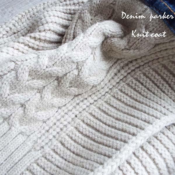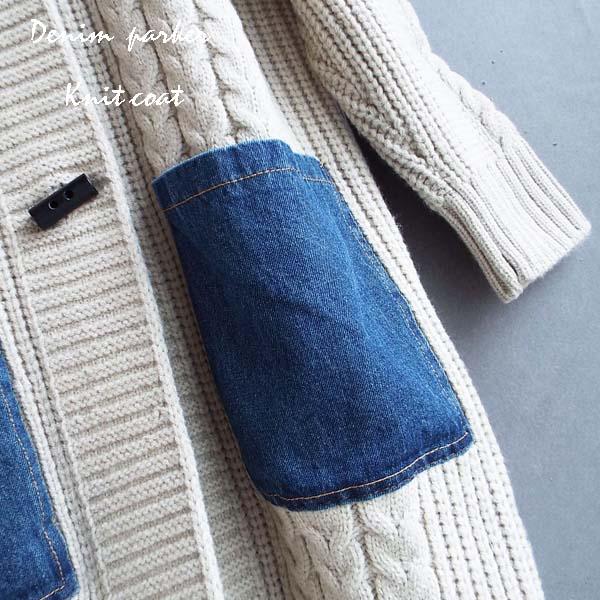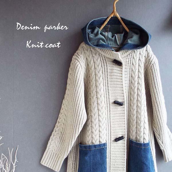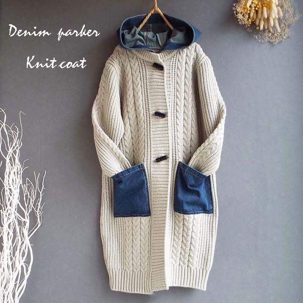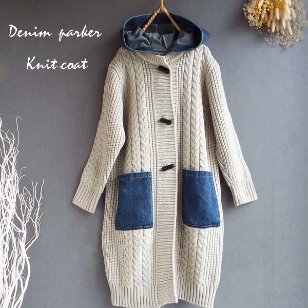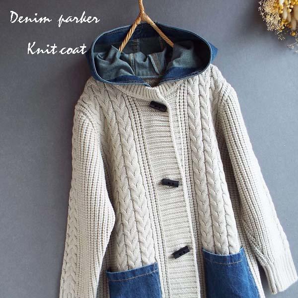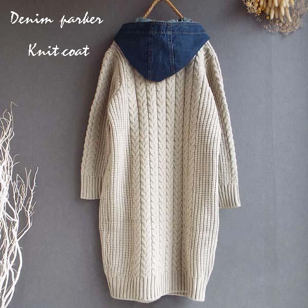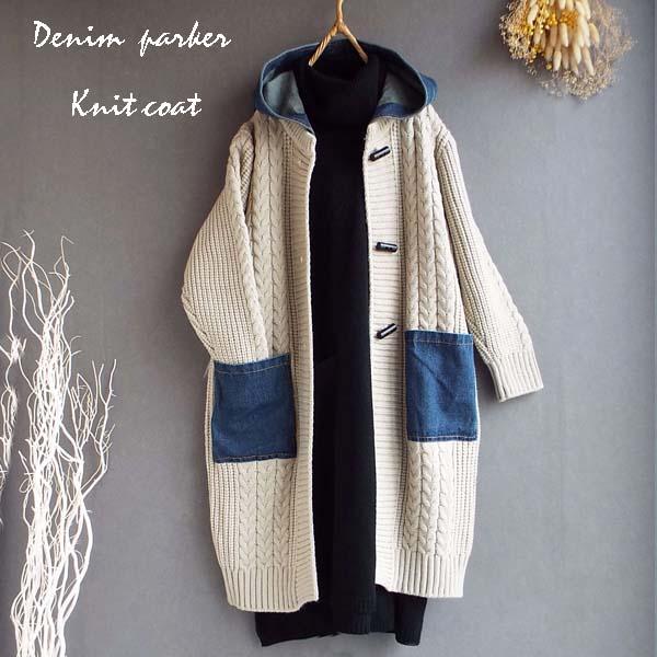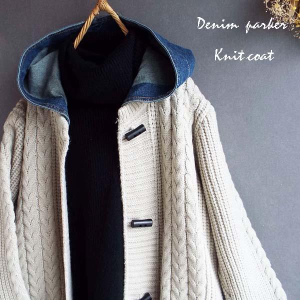コート レディース ニット 縄編み デニム パーカー 体型カバー上品 華やか ゆったり 冬 40代 50代 s3524