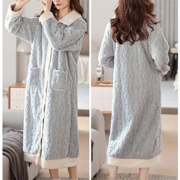 ◎起毛素材で着心地もよく、ロング丈で足元まで暖かい。