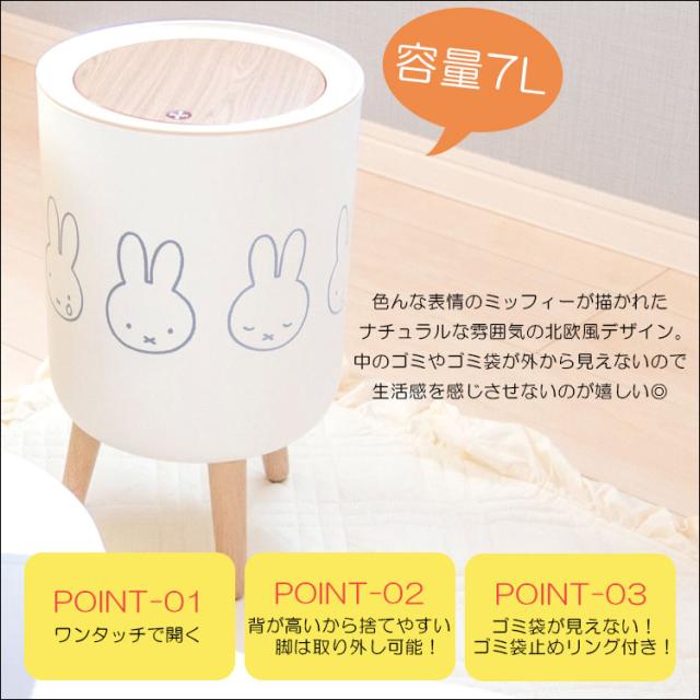 平日12時 平日祝9時即出荷 ミッフィー ゴミ箱 おしゃれ 洗面所 車 10リットル未満 10l以下 ふた付き リビング かわいい スリム 円柱 小さい 蓋つき 小さめ 中身 見えない 丸型 密閉 ダストボックス 脚付き 白 ホワイト miffy ミッフィー グッズ キャラクター プレゼント