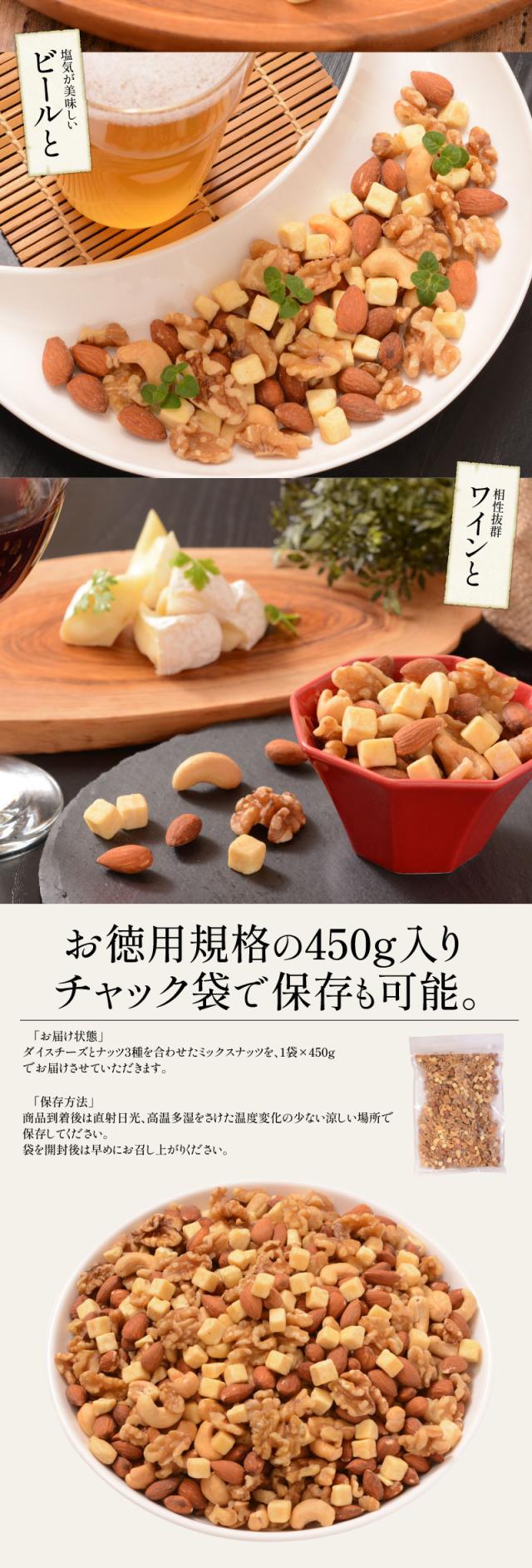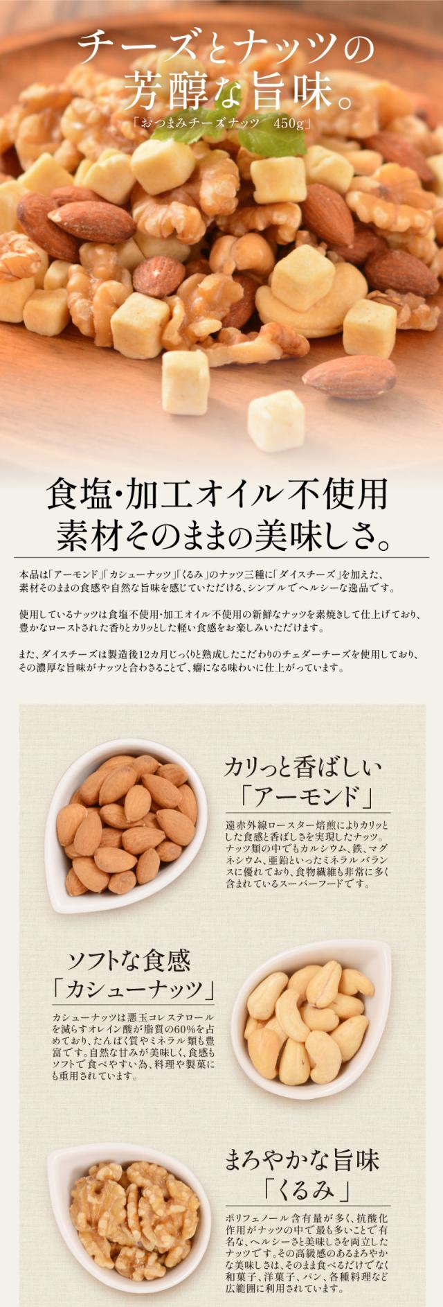 おつまみチーズナッツ450g アーモンド カシューナッツ くるみ ダイスチーズ 食塩不使用 加工オイル不使用[送料無料][ポスト投函] ギフト プレゼント お歳暮
