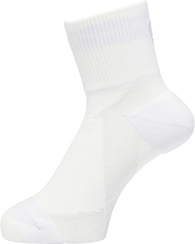 足裏にある3つのアーチをサポートするテーピング構造を持ったソックス。足裏の内側縦アーチ、外側縦アーチ、横アーチをサポートして、足にまつわるトラブルの原因となりやすいアーチの崩れを軽減。アーチを支えることで、着地時に脚にかかる衝撃を吸収するだけでなく、足裏アーチがバネの役割を果たして推進力をもたらします。ソックス内側のつま先とかかと部分は、クッション性の高いパイル構造に。つま先は、強度の高い糸に切り替えて補強しています。くるぶしがしっかり隠れるクォーター丈。環境への負荷に配慮してリサイクル素材を使用しています。特許登録済み(特許番号:5704860号)