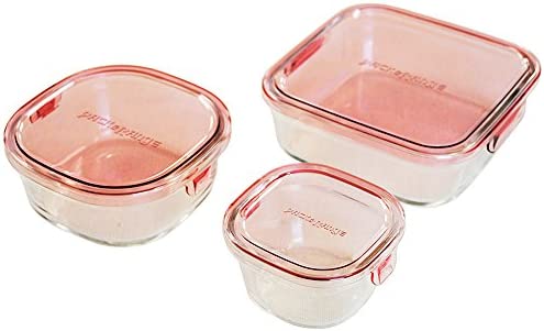 iwaki(イワキ) 耐熱ガラス 保存容器 ピンク 角型 3個セット パック&レンジ PS-PRN-3P1