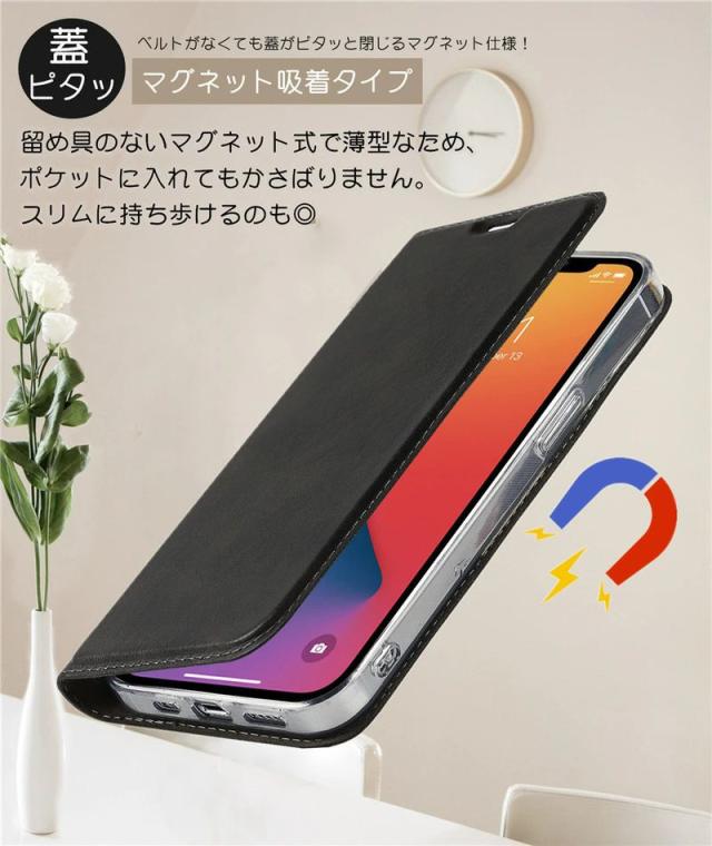 ○無駄な装飾を一切省いたシンプルなデザインが魅力の手帳型ケースです。