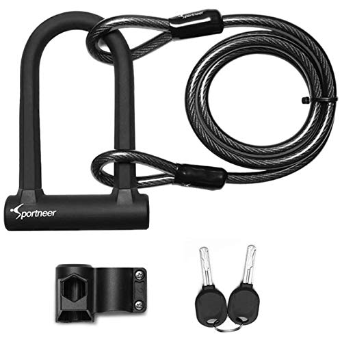 Sportneer 自転車 鍵 U字ロック 150cmケーブル付き 電動自動車バッテリーロック ワイヤーロック ミニU型ロック 自転車 ロック