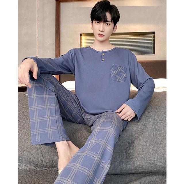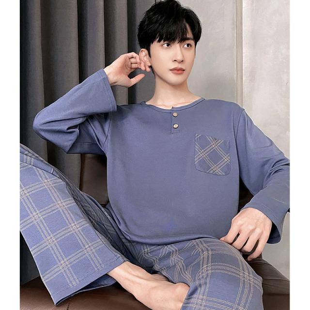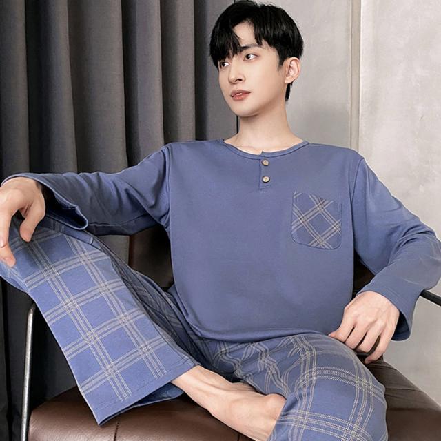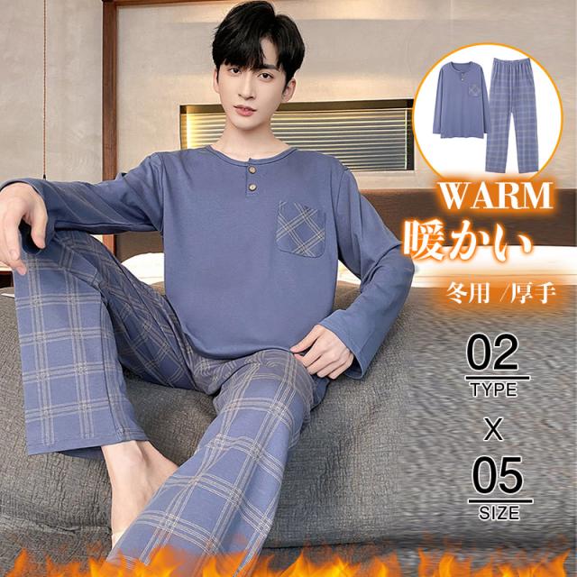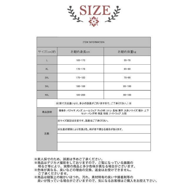寝巻き パジャマ メンズ ルームウェア チェク柄 コトン 長袖 薄手 大きいサイズ 暖か 上下セット パンダ柄 保温 快眠 ナイトウェア 入院