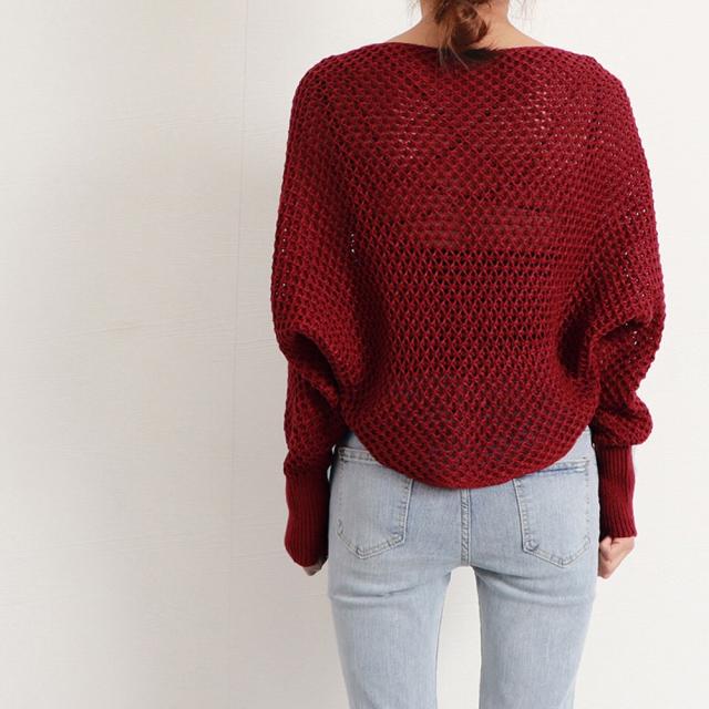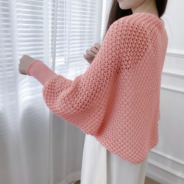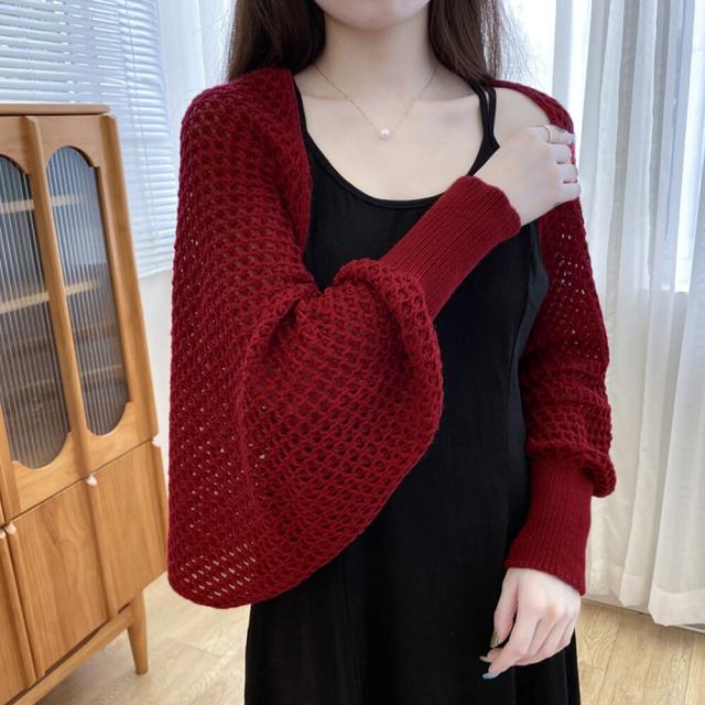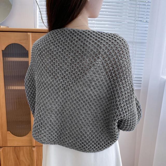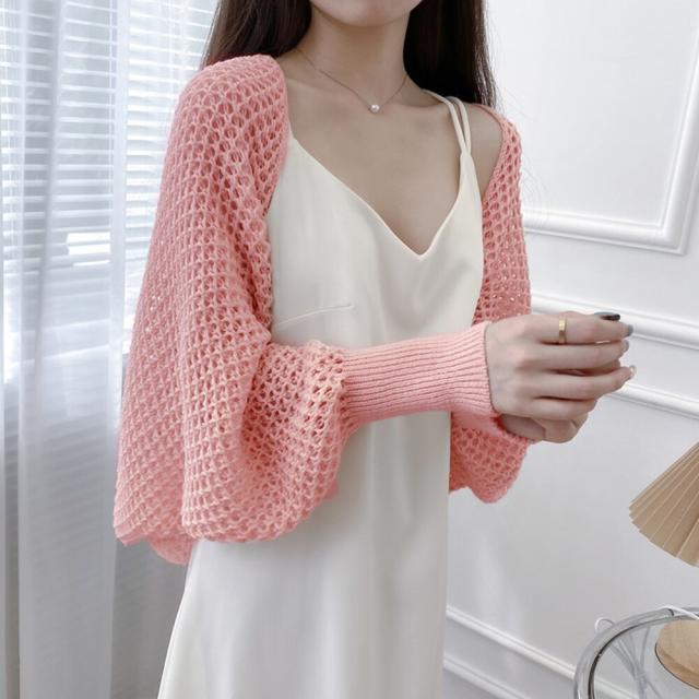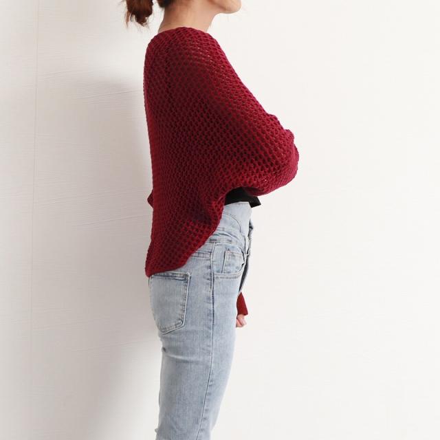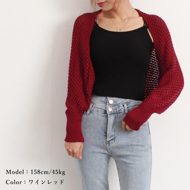 大人女性のフェミニンな透かし編みニットボレロカーディガンです