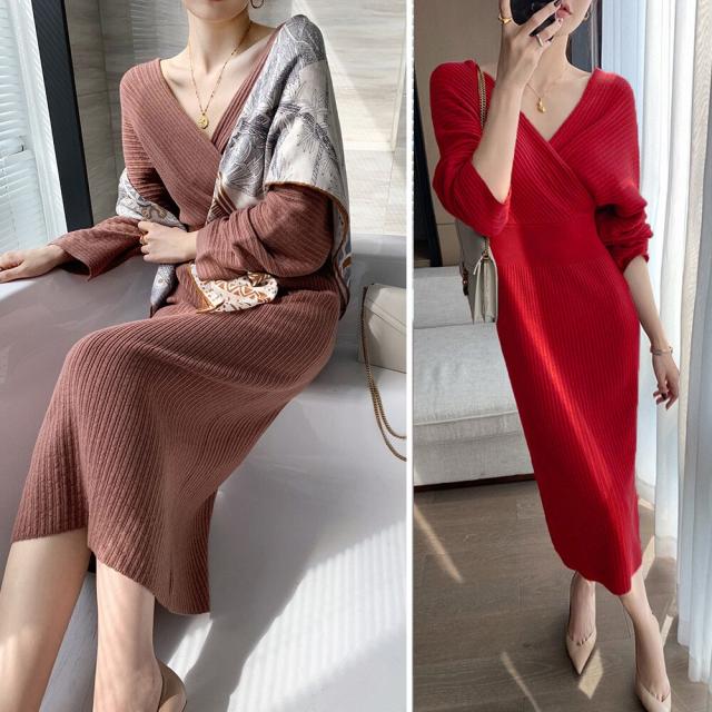 カシュクールニットワンピース 韓国風