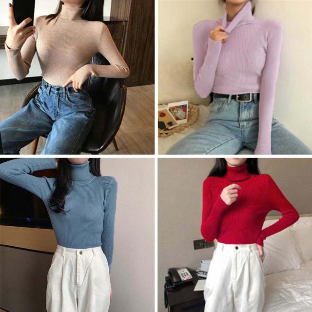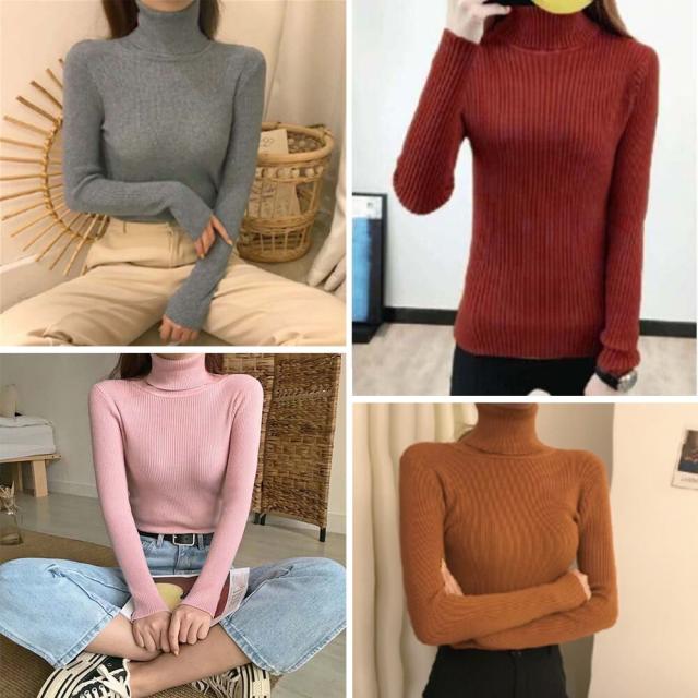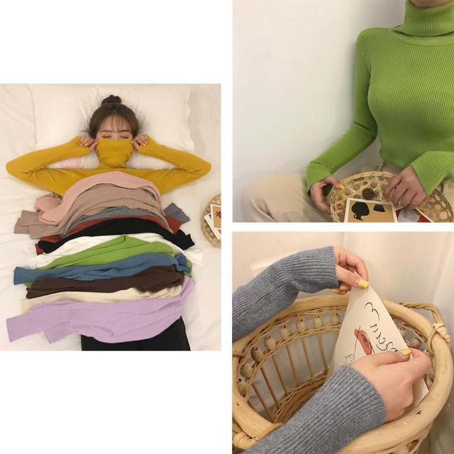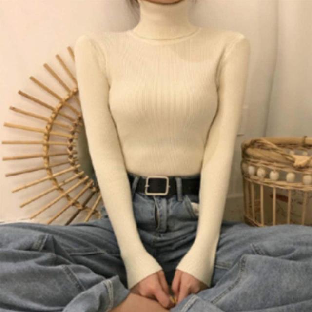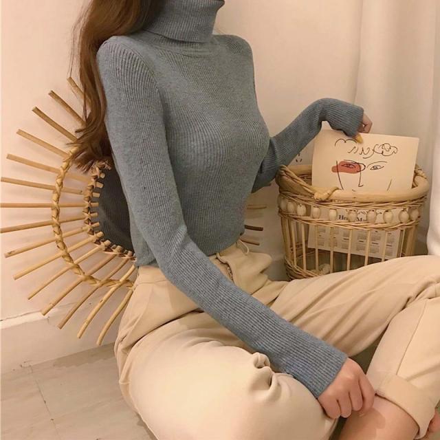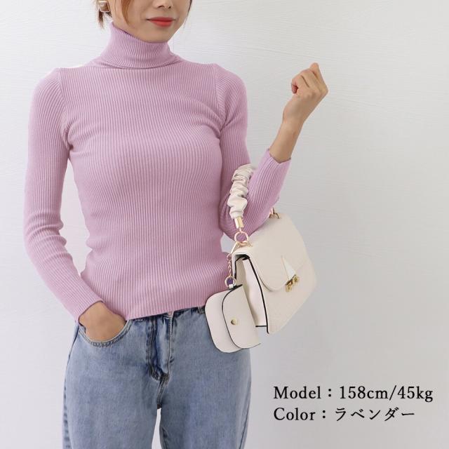 体のラインをきれいに魅せ、女性らしさを際立せるタートルネックリブニットトップス