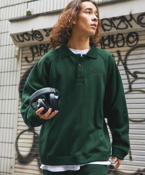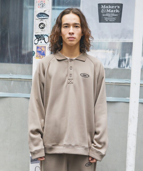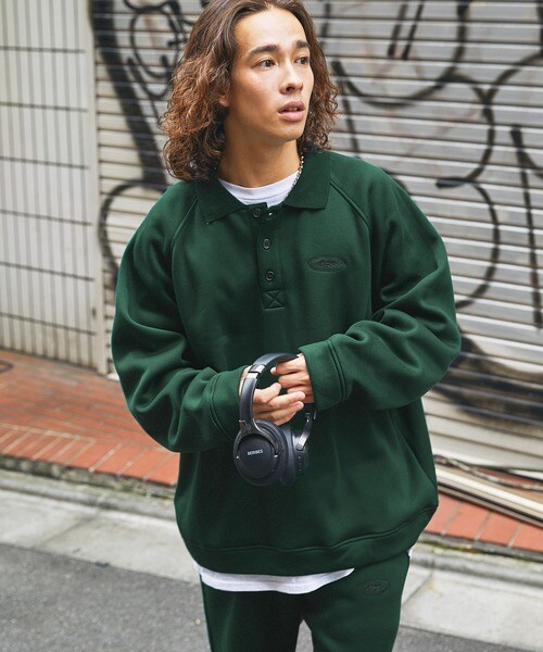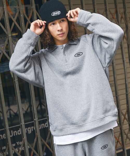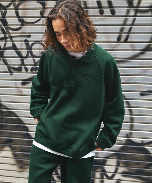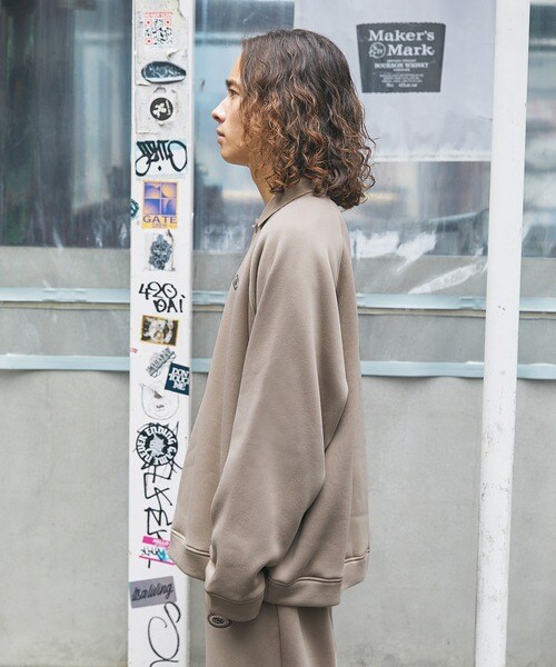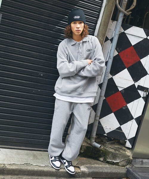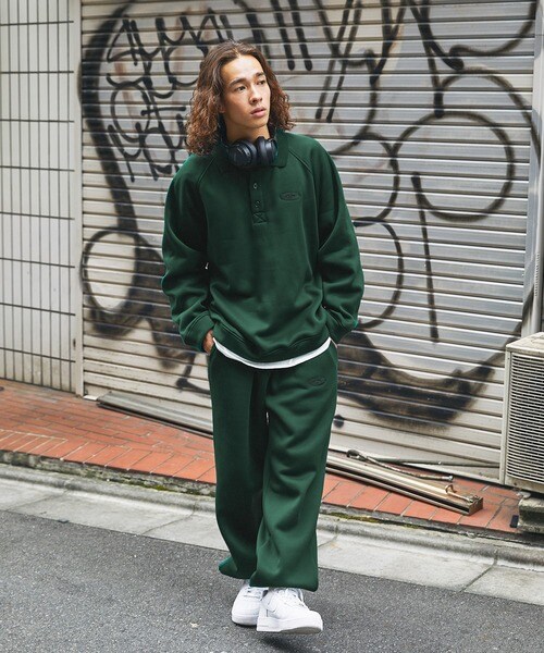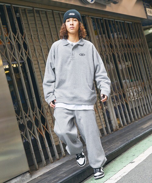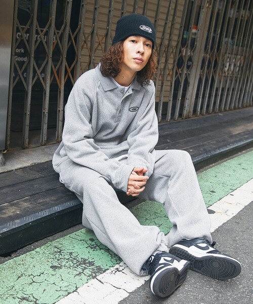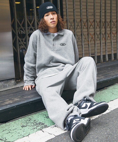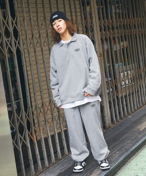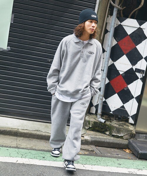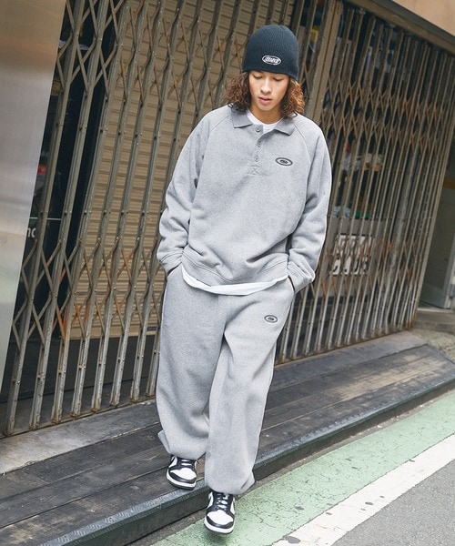 【 スウェット セットアップ 】ロゴ刺繍襟付きスウェット+イージスウェットパンツ