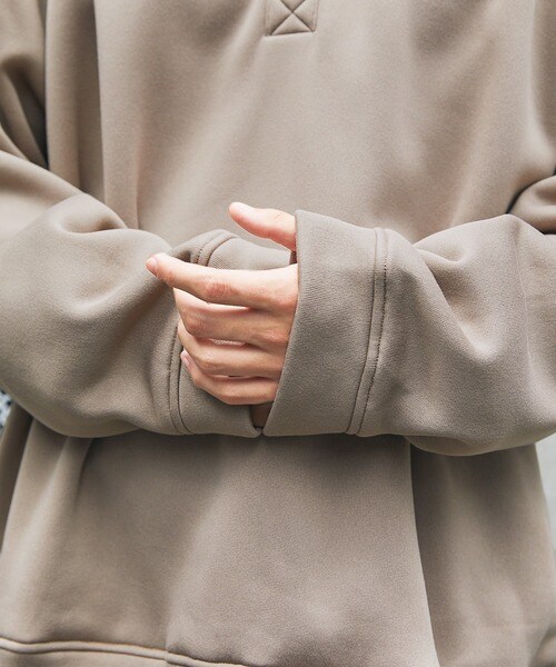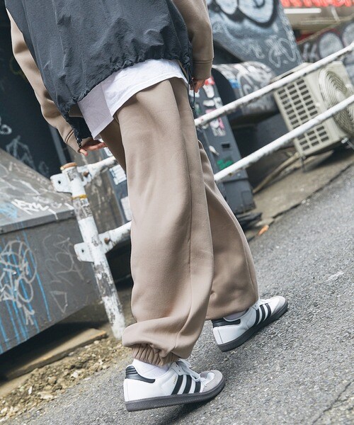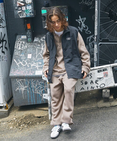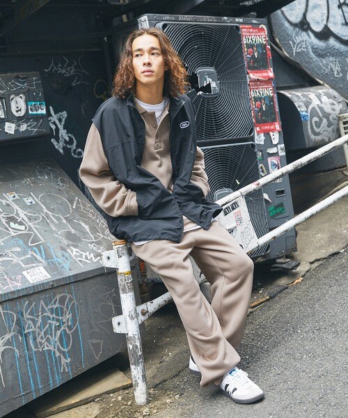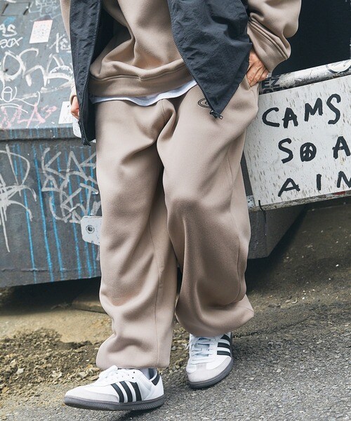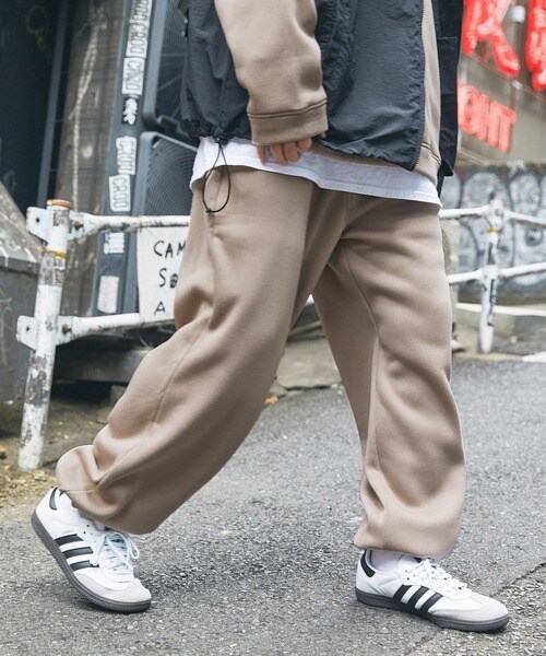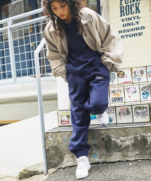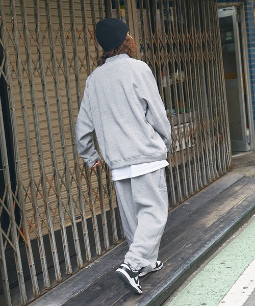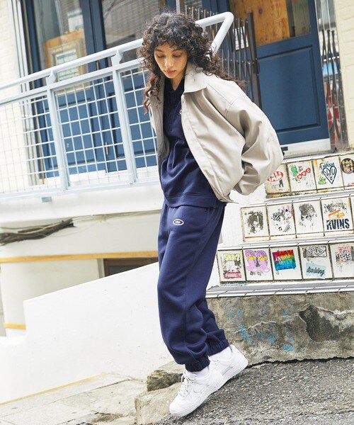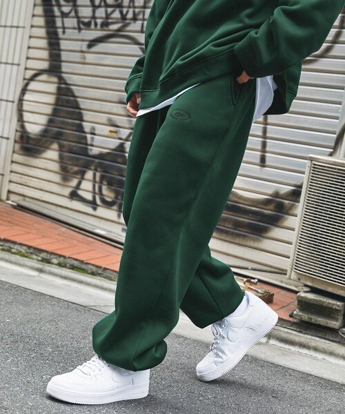 プルオーバーは大きく落ちたドロップショルダー、パンツはウエスト部分がゴム入りでドローコードがついているため、ストレスフリーでワンマイルウェアとしても着用可能です。