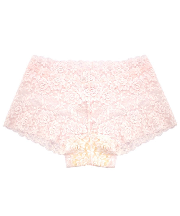 ローライズでマタニティから穿ける総レースのショーツは、ウエスト部分も裾もシームレスで締め付け感のない快適な穿き心地。