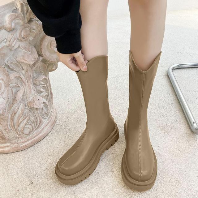 今季大注目フェイクレザーの柔らかな素材で高見えが叶えられるロングブーツです。