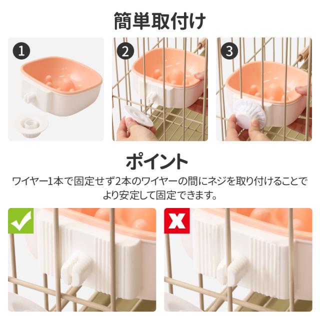ケージ・サークルなどに取り付けて使うことができるペット用食器です。