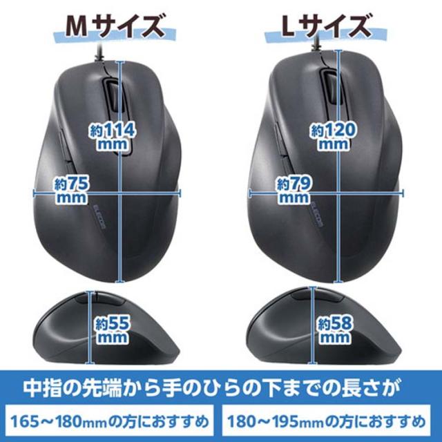 【エレコム 有線 マウス 静音 5ボタン Lサイズ EX-G ブラックの商品詳細】
