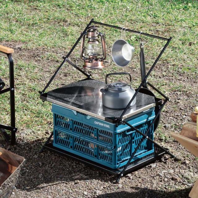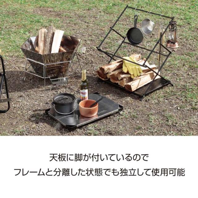 ●上段には火にかけた鍋やダッチオーブンが置けるステンレス天板を採用。