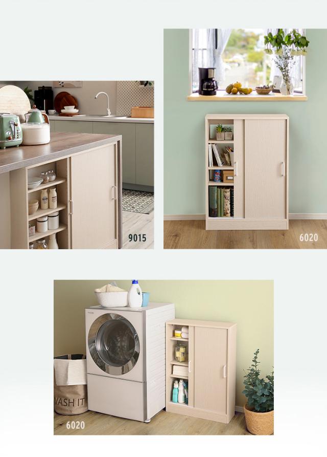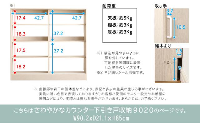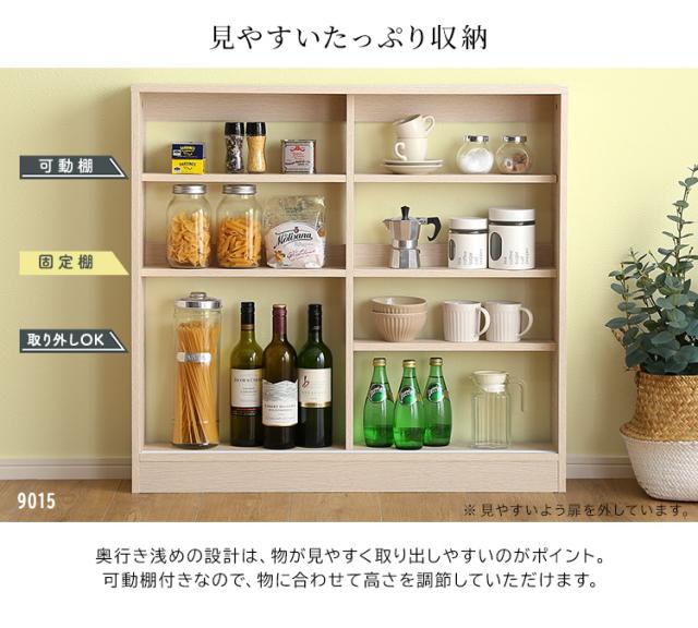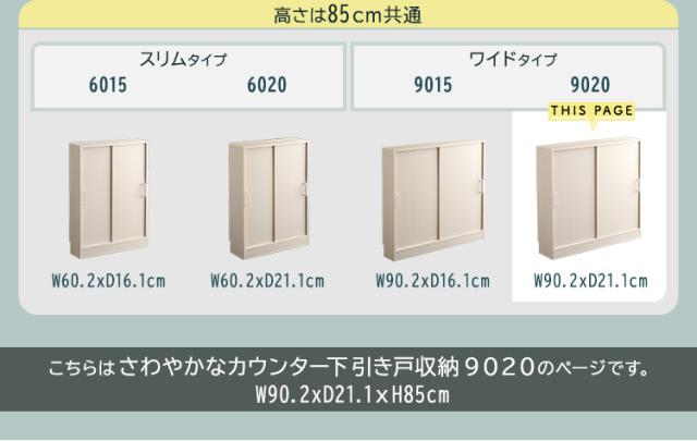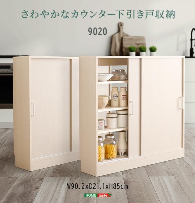 キッチンカウンター下 引き戸収納9020 幅90cm キッチン収納 リビングラック キッチンカウンター カウンター下収納 キャビネット リビングボード 食器棚 収納棚 薄型 ワイドラック 可動棚 引き戸 書棚 台所 おしゃれ 北欧