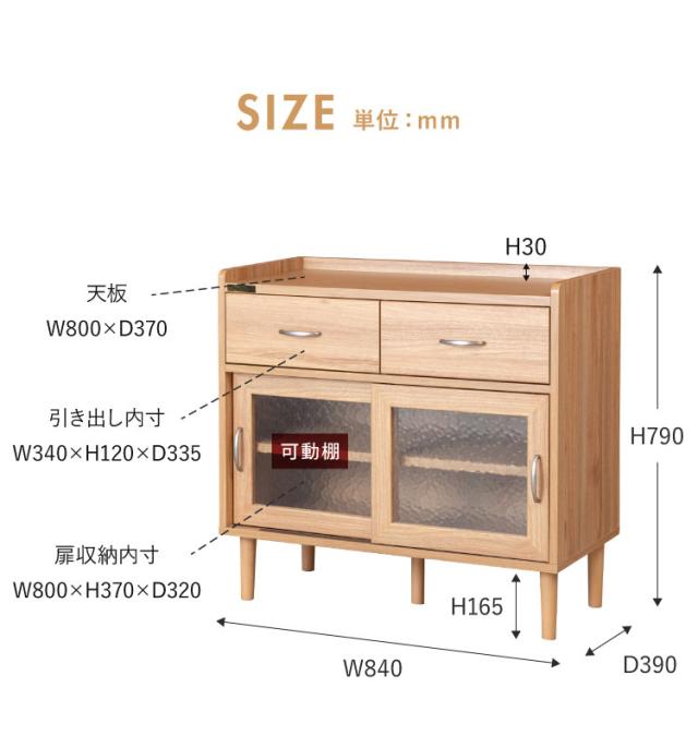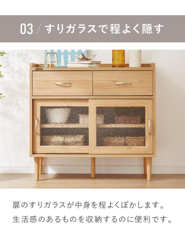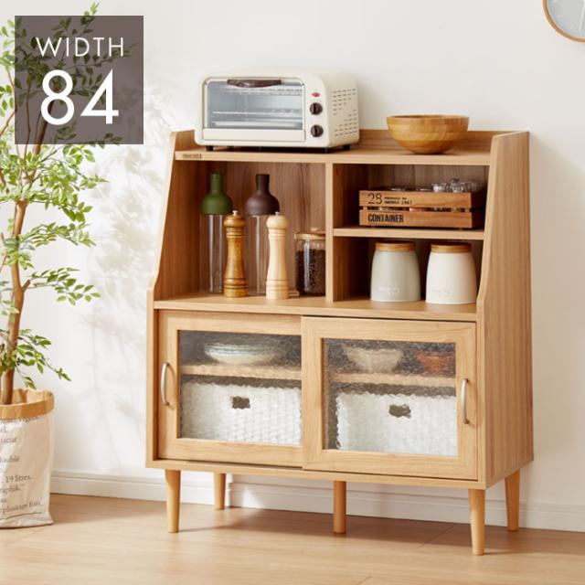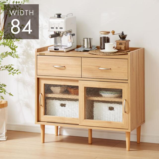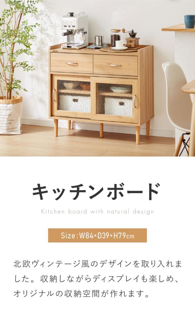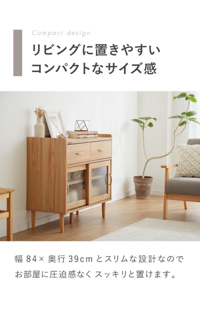 コンパクト ボード 幅84cm キッチンボード 木目調 擦りガラス扉 可動棚 シンプル おしゃれ 北欧 ヴィンテージ レトロ 引き出し付き レンジ台 電話台 カウンター スリム(代引不可)【送料無料】